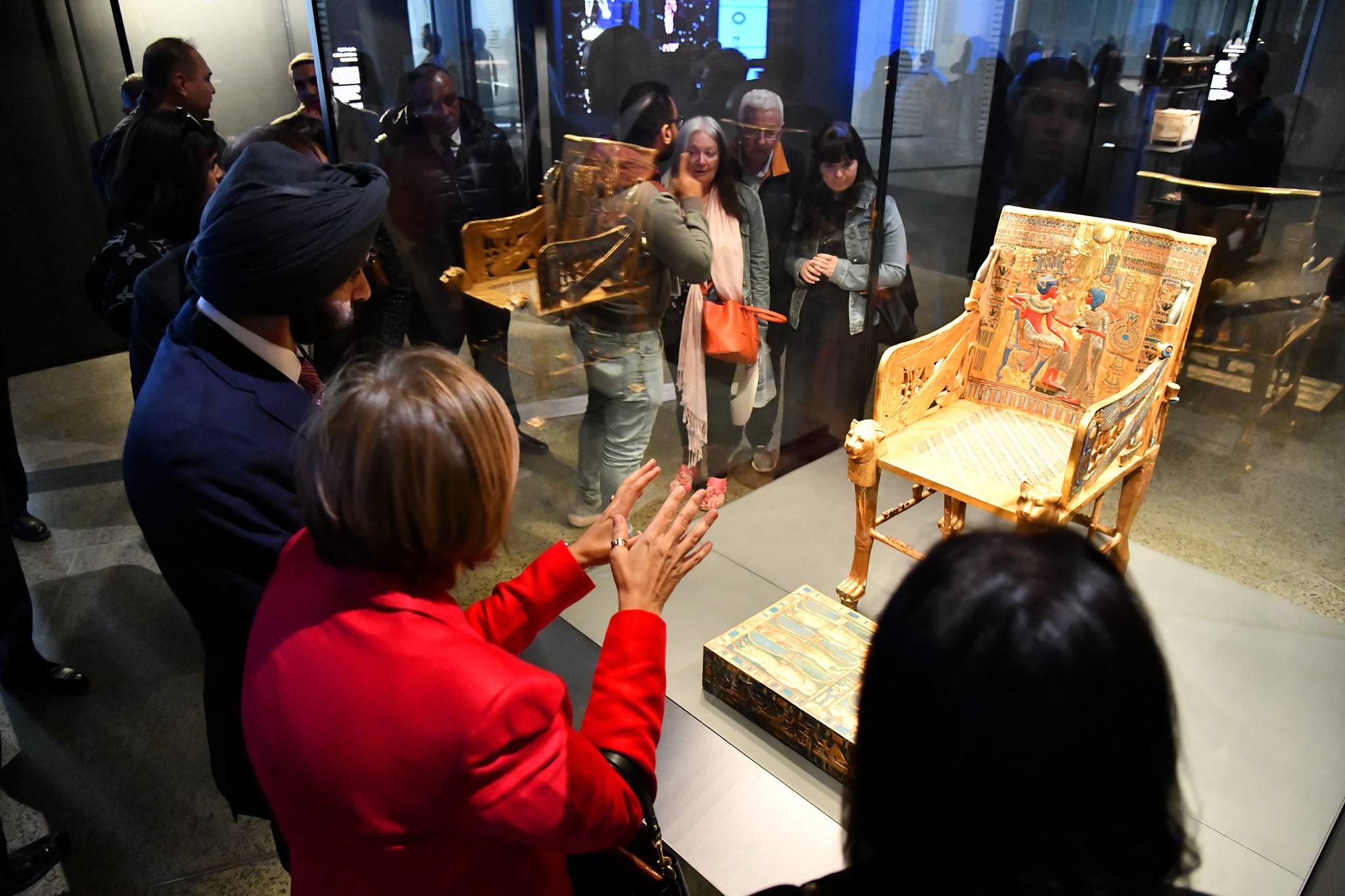 وتضمنت جولة الساحة الخارجية، والبهو الرئيسي، والدرج العظيم، وصولاً إلى قاعات العرض الرئيسية التي تضم 12 قاعة عرض متحفي، تروي موضوعاتها المتنوعة تاريخ الحضارة المصرية القديمة منذ عصر بداية الأسرات وحتى العصر اليوناني الروماني ثم قاعات الملك الذهبي توت عنخ آمون.
