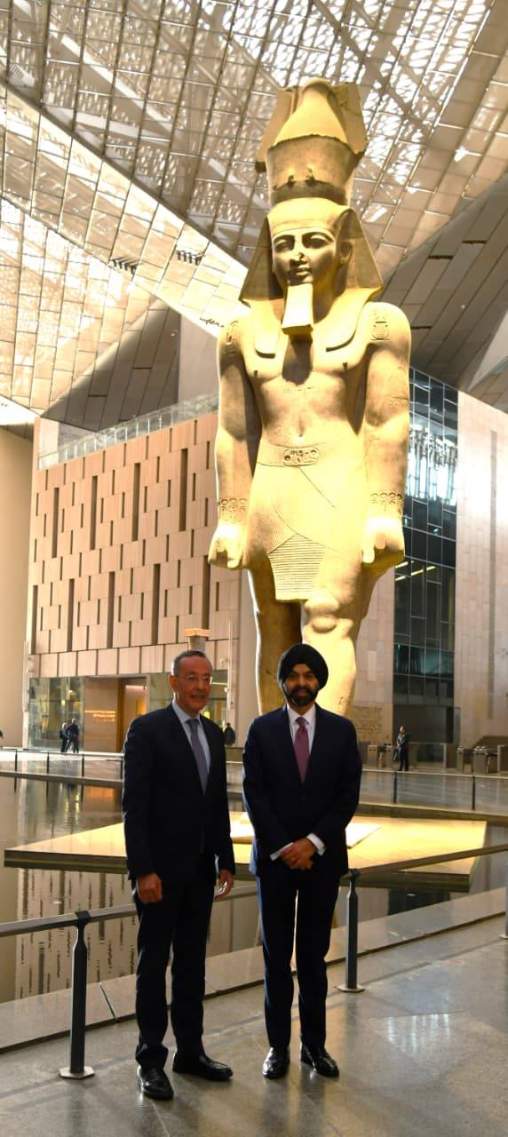 استقبل المتحف المصري الكبير أجاي بانجا رئيس مجموعة البنك الدولي وحرمه، والوفد المرافق لهما، وذلك على هامش زيارته الرسمية إلى مصر.