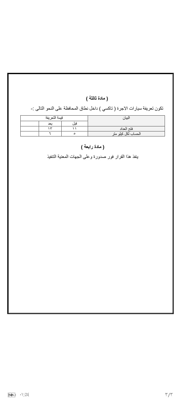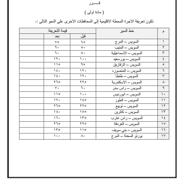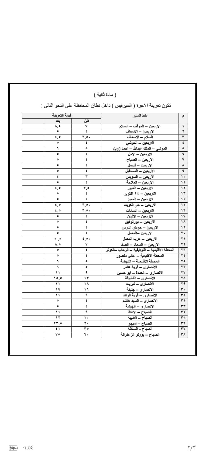 إعتماد التعريفة الجديدة لسيارات الأجرة الميكروباص على الخطوط الداخلية والخارجية و التاكسي بالسويس