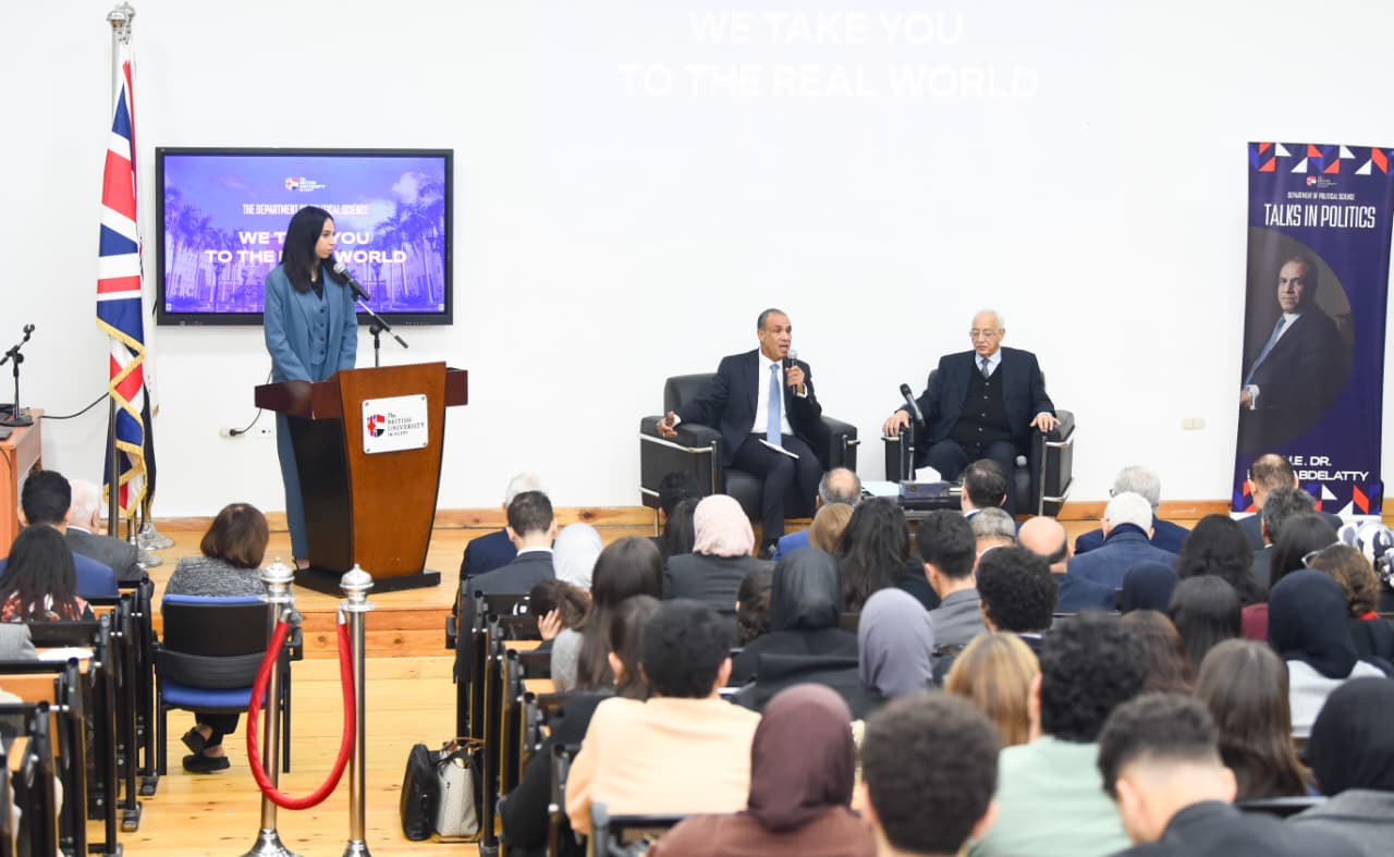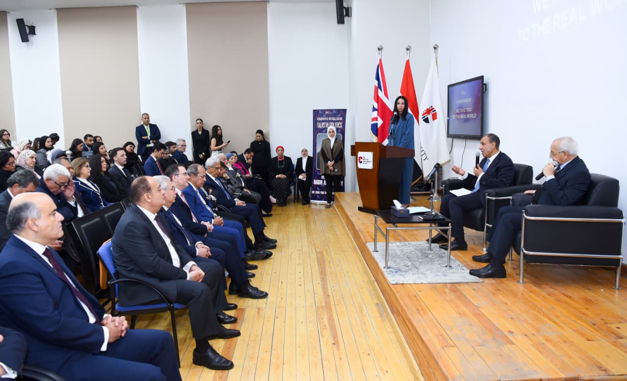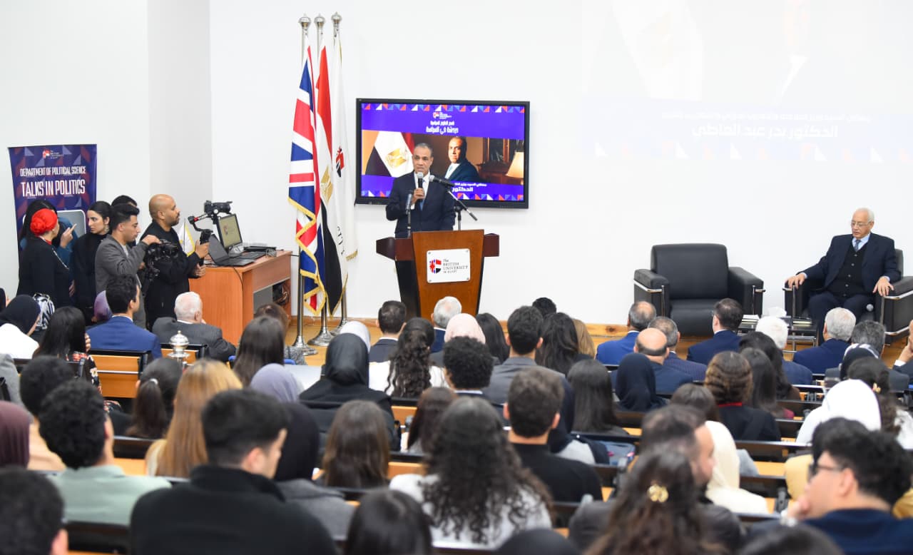 عقد الدكتور بدر عبد العاطي، وزير الخارجية والتعاون الدولي والمصريين بالخارج، يوم الخميس 12 مارس، لقاءً تفاعليًا مع طلاب الجامعة البريطانية في مصر، أداره أ.د. علي الدين هلال أستاذ العلوم السياسية، بحضور أ.د. محمد لطفي رئيس الجامعة وعضو لجنة الشئون الخارجية والعربية والأفريقية بمجلس الشيوخ، والسفير مارك برايسون ريتشاردسون، سفير المملكة المتحدة بالقاهرة.