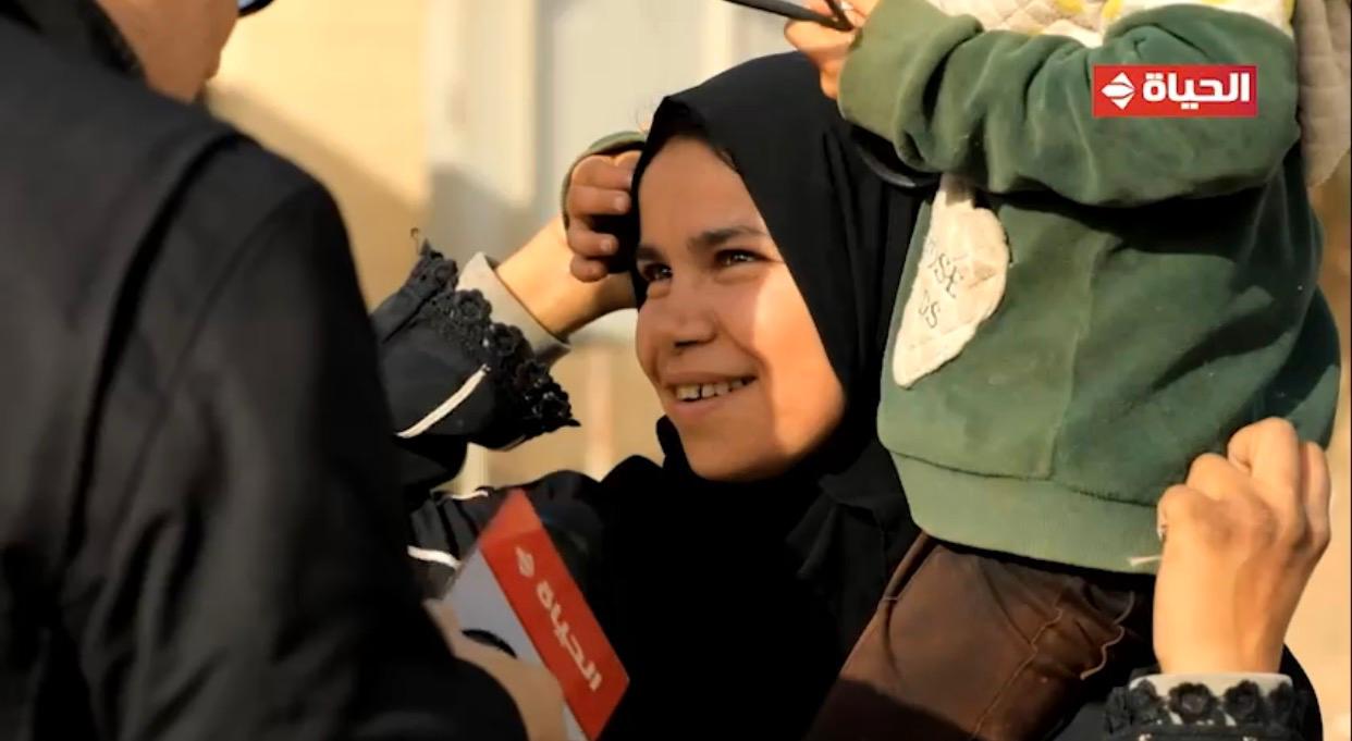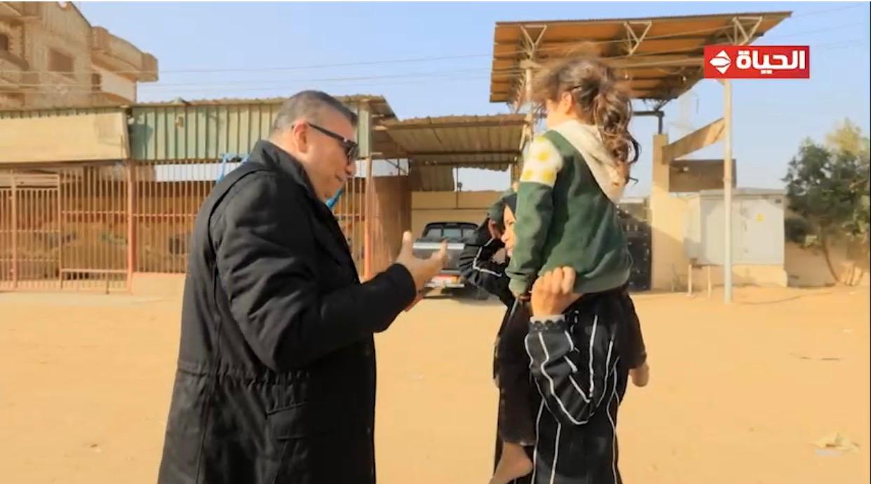 سيدة تحمل ابنتها علي كتفها وتجمع الفراولة رغم تعب قلبها وعمرو الليثي يجبر بخاطرها ويهديها جائزة مالية
