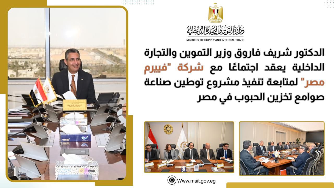 عقد الوزير اجتماعًا مع مسؤولي شركة "فييرم مصر" لمتابعة تنفيذ مشروع توطين صناعة صوامع تخزين الحبوب في مصر بالشراكة مع شركة سامكريت المصرية وشركة فييرم البولندية، في إطار دعم الصناعات الاستراتيجية وتعزيز الأمن الغذائي.