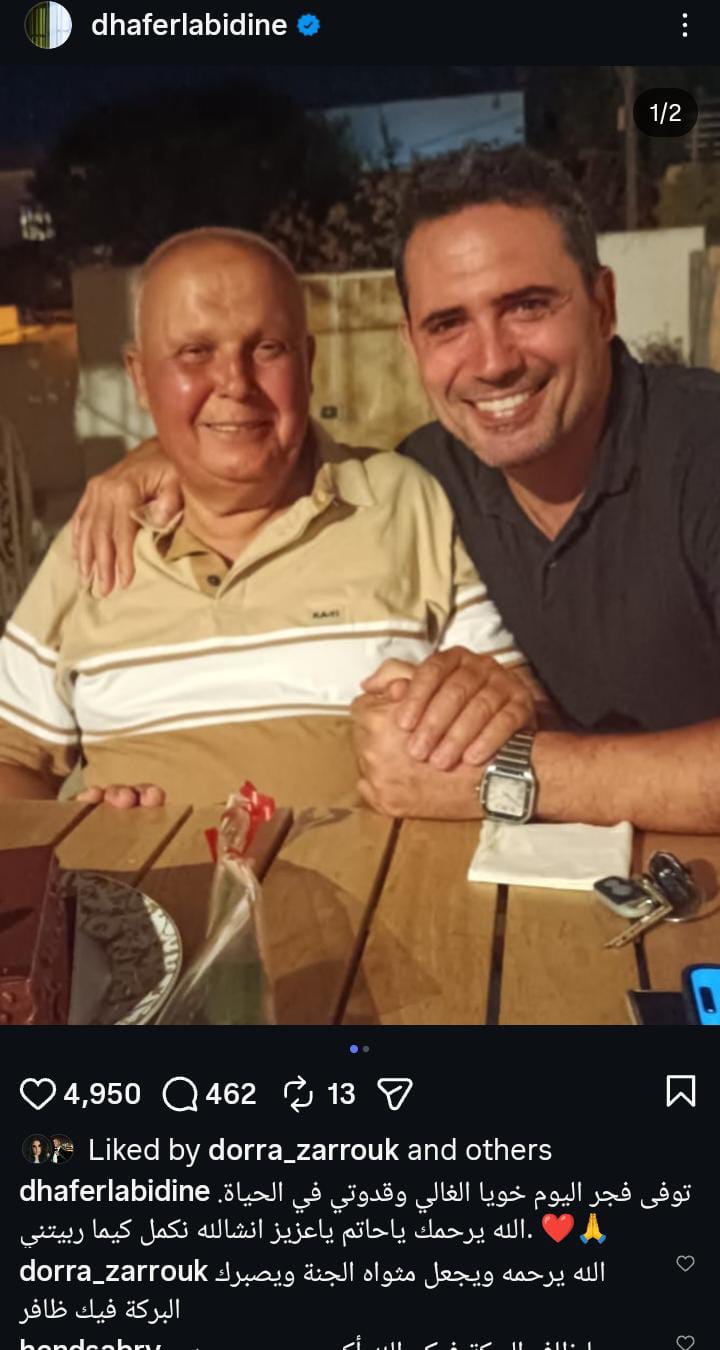 توفى في الساعات الأولى من صباح اليوم حاتم العابدين شقيق الفنان التونسي ظافر العابدين الأكبر.