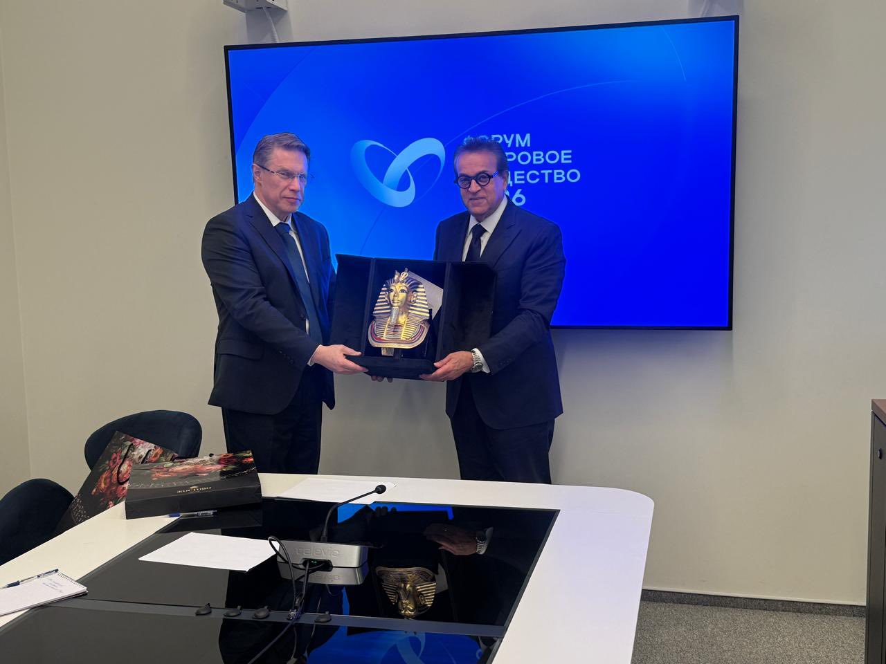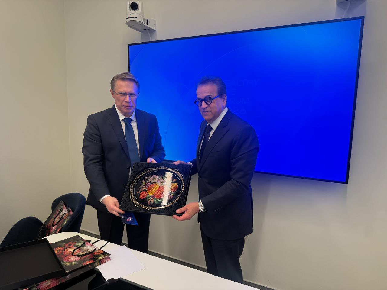 التقى خالد عبدالغفار وزير الصحة والسكان، بالدكتور ميخائيل موراشكو وزير الصحة في روسيا الاتحادية، لبحث عدد من ملفات العمل المشتركة، وذلك على هامش منتدى «الحياة الصحية» الذي عقد في موسكو يومي 16 و17 مارس الجاري، والذي يهدف إلى إطالة سنوات الحياة الصحية وتعزيز الصحة النفسية وتوفير بيئة داعمة لتحسين جودة الحياة.
