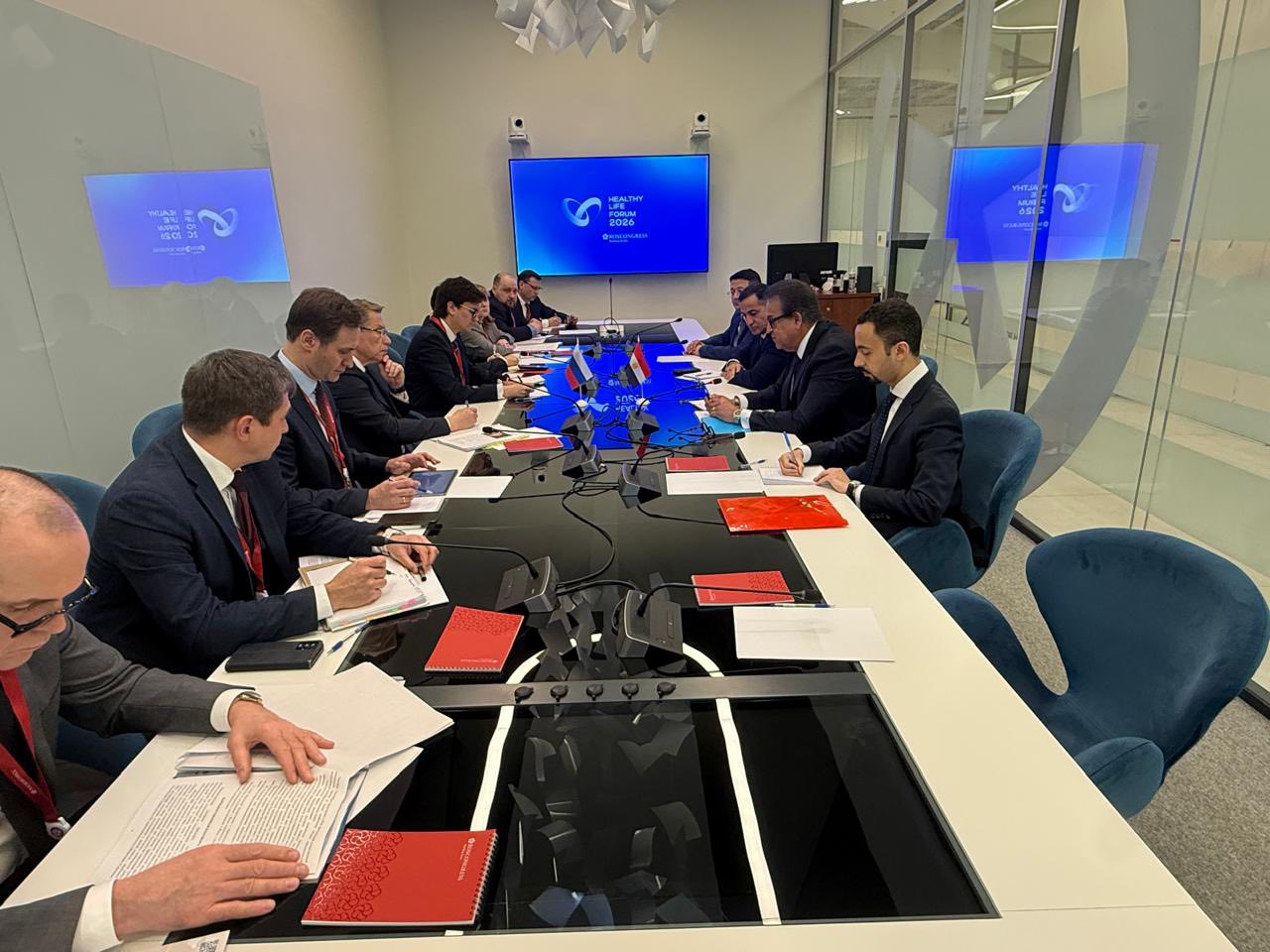 وفي مجال التعاون العلمي والأكاديمي، أشار إلى أن الوزيرين بحثا إمكانية الاعتراف بالشهادات والدرجات العلمية الصادرة عن بعض الجامعات الروسية لدعم التعاون في التعليم الطبي والتطوير المهني، إلى جانب توسيع برامج التدريب التخصصي في مجالات طب الأورام والأشعة والصحة الرقمية.