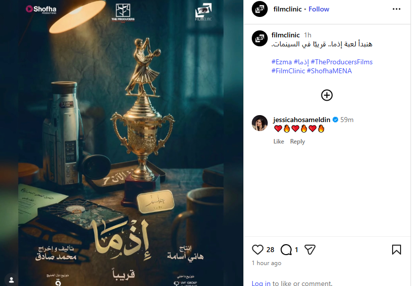 ونشرت فيلم كلينك البوستر الرسمي للفيلم، وذلك عبر حسابها الرسمي بموقع التواصل الاجتماعي “انستجرام”، وعلقت عليها قائلة: هنبدأ لعبة إذما، قريبا في السينمات.