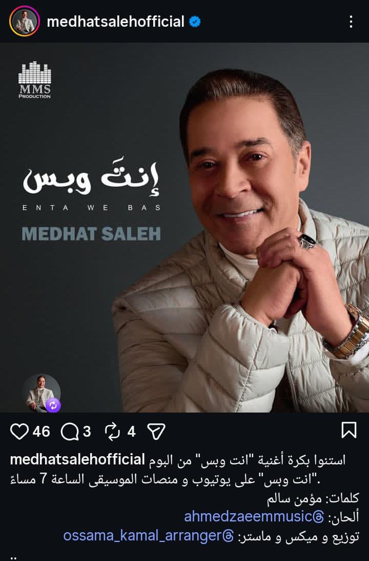 وكان مدحت صالح قدم أغنية أنا فوقت، وهي تتر مسلسل شهادة معاملة أطفال بطولة محمد هنيدي، والذي سبق عرضه في الموسم الرمضاني 2025