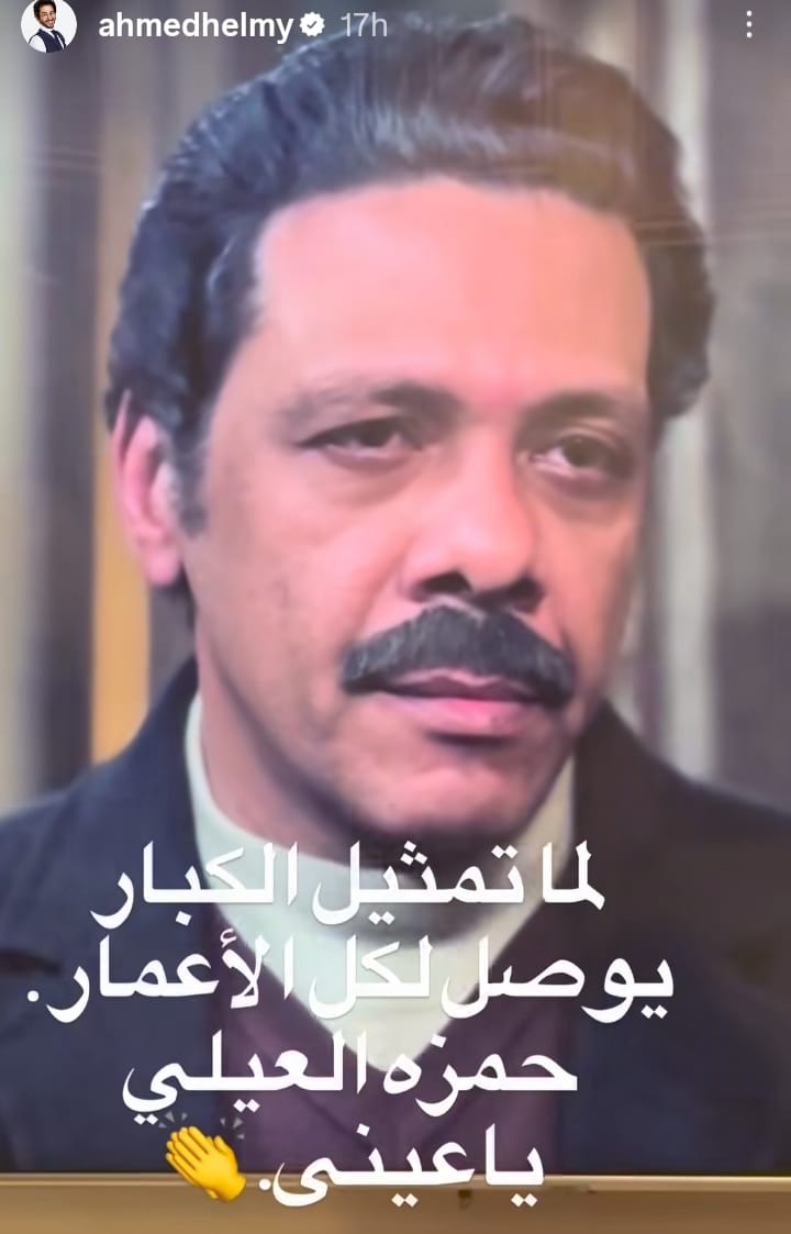 ونشر أحمد حلمي صورة لـ حمزة العيلي، وذلك عبر حسابه الرسمي بموقع التواصل الاجتماعي “انستجرام”، وعلق عليها قائلا: لما تمثيل الكبار يوصل لكل الأعمار، حمزة العيلي يا عيني.