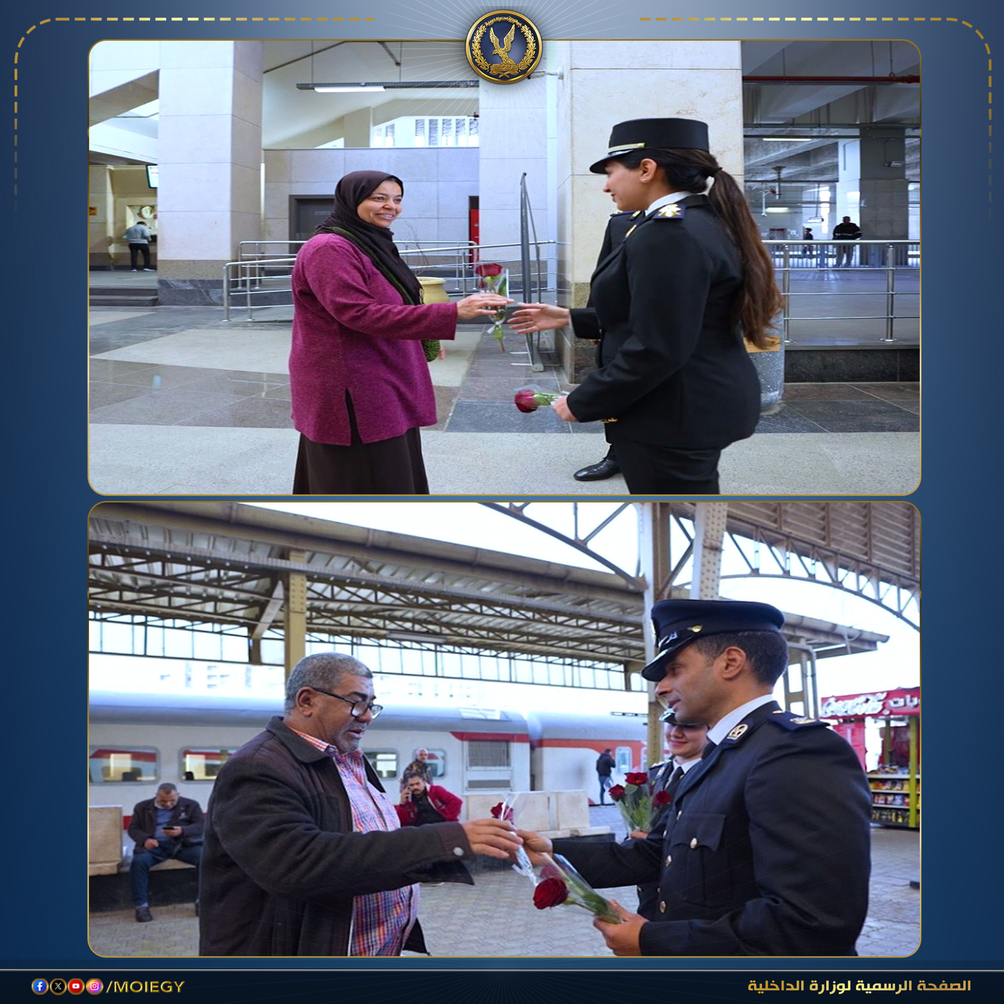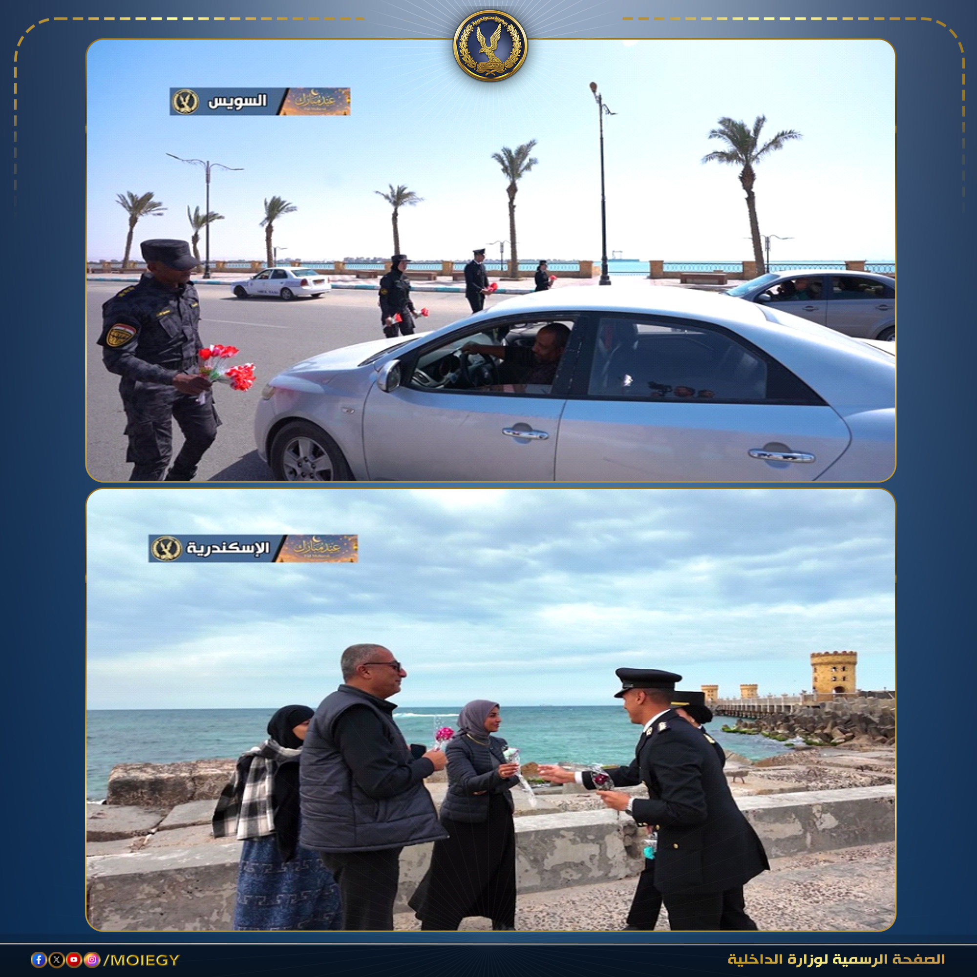وزارة الداخلية تحتفل مع المصريين بتوزيع الورود في الشوارع والميادين في ثاني ايام عيد الفطر