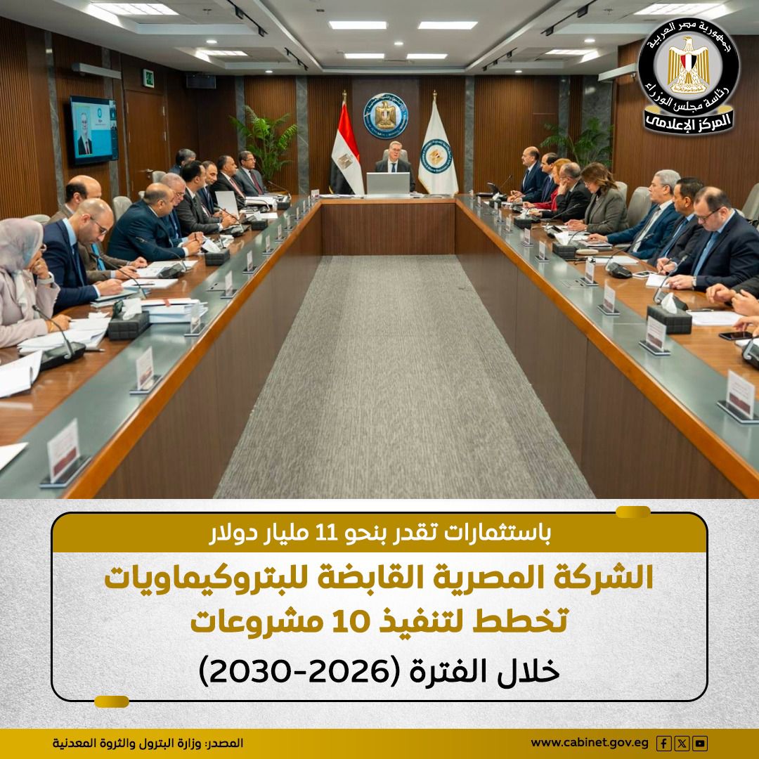 أعلنت الشركة المصرية القابضة للبتروكيماويات عن خطتها الخمسية للفترة 2026-2030، والتي تهدف إلى تنفيذ 10 مشروعات لتوطين صناعة وإنتاج أكثر من 20 منتجًا للسوقين المحلي والعالمي، بطاقة إنتاجية تصل إلى 7.5 مليون طن، باستثمارات تقدر بنحو 11 مليار دولار.