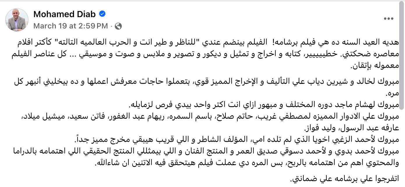 أعلى إيراد يومي في تاريخ السينما.. من كل قلبي مليون مبروك لأخواتي نجوم وصناع الفيلم.. حقيقي فرحتونا".