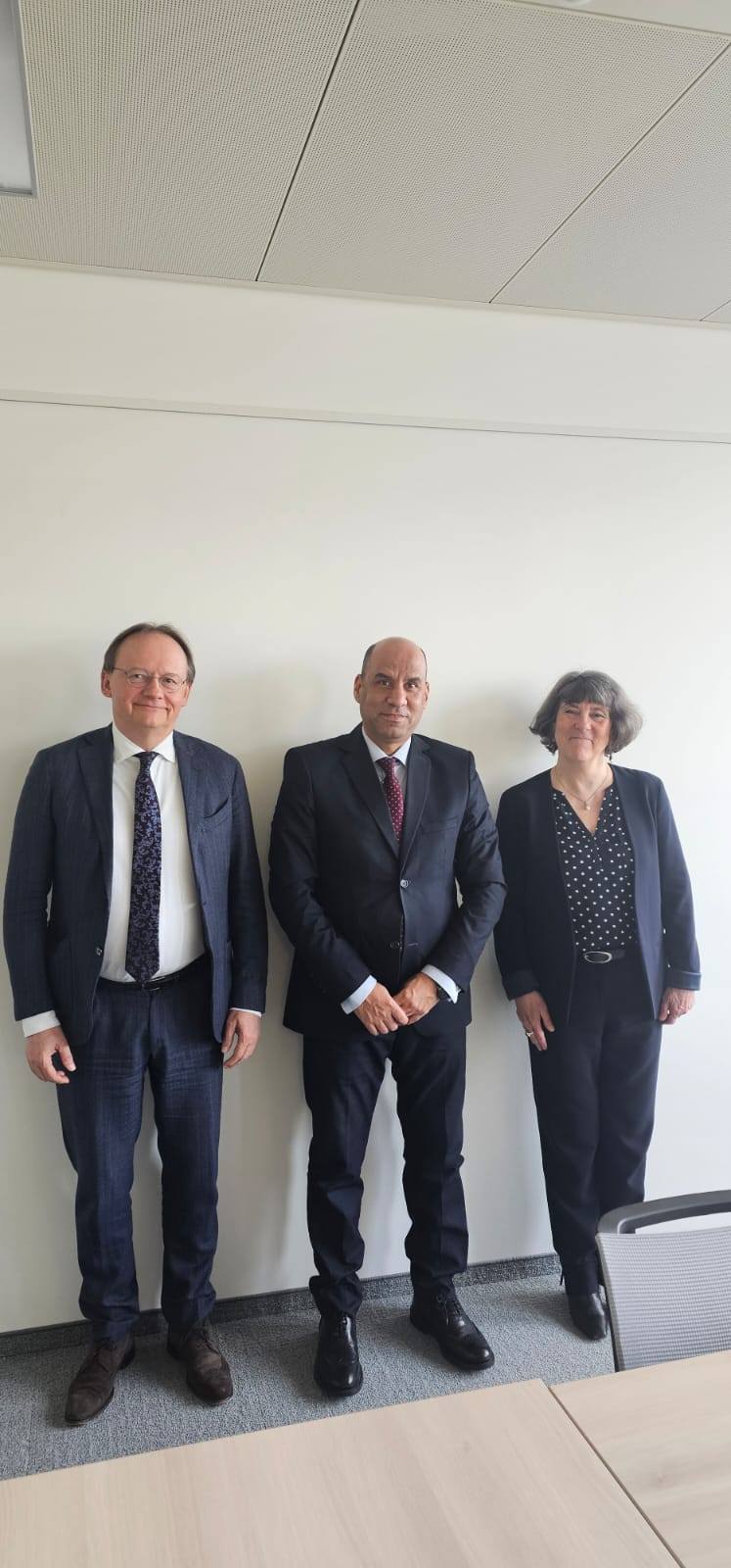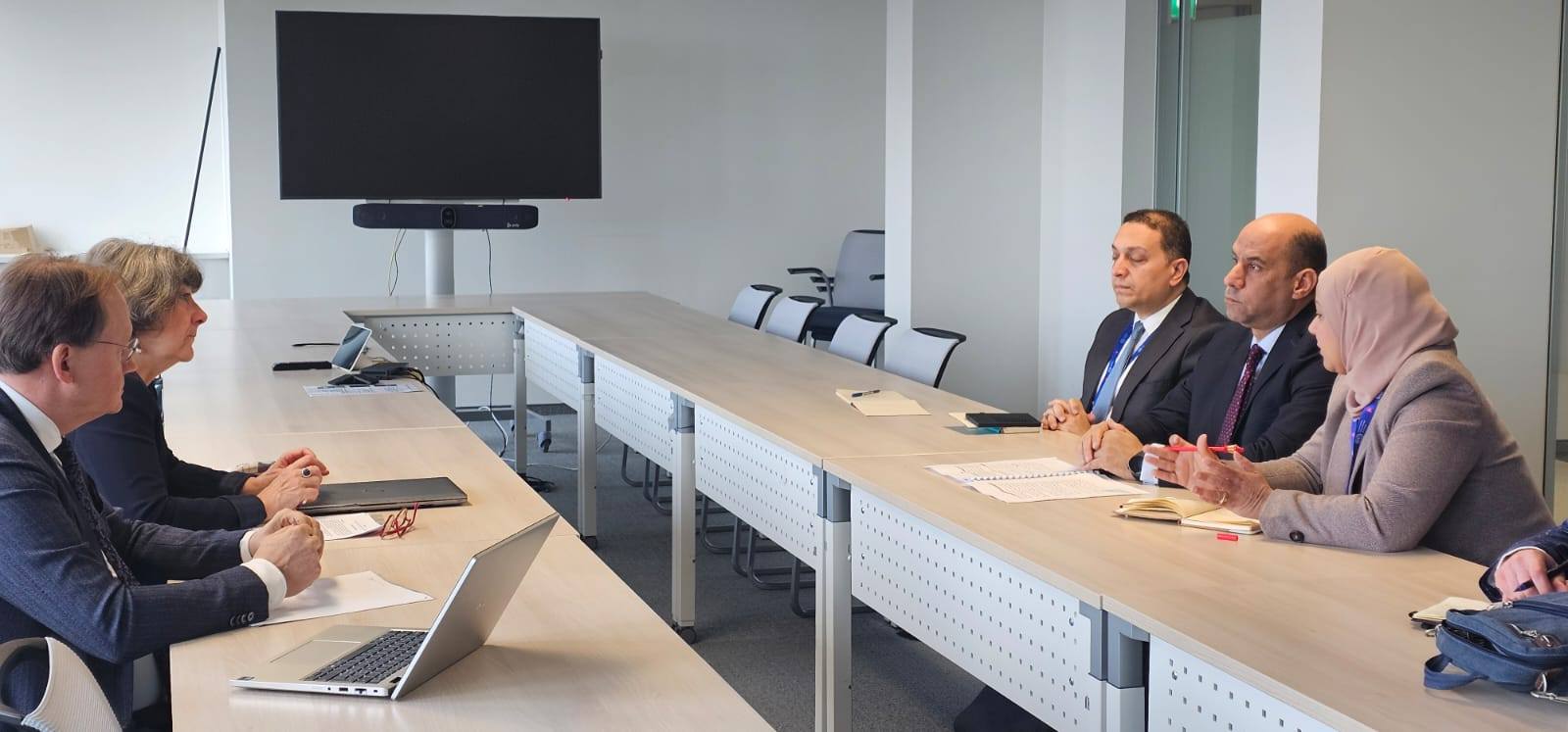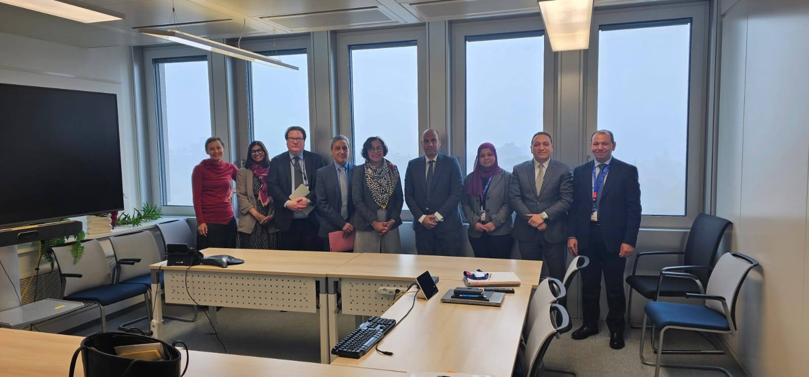 حضر اللقاء: إيهاب عبدالعاطي عليان المستشار القانوني للوزير، ومحمد عادل من البعثة المصرية في جنيف، وأمنية عبدالحميد مساعد فني بمكتب الوزير.