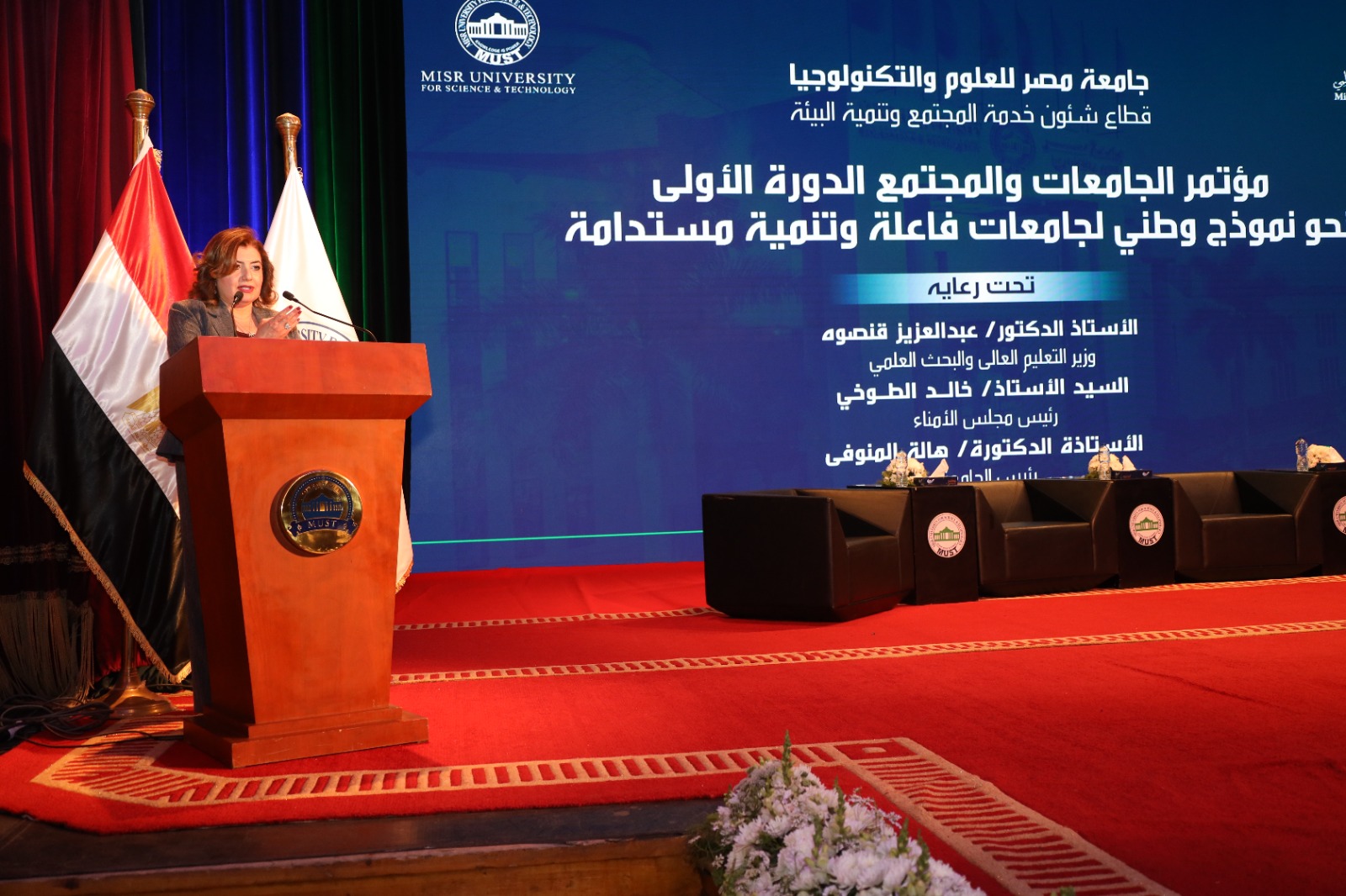 في إطار التوجهات الوطنية الهادفة إلى تحقيق التنمية المستدامة وتعزيز دور مؤسسات التعليم العالي في خدمة المجتمع، نظمت جامعة مصر للعلوم والتكنولوجيا فعاليات الدورة الأولى من مؤتمر «الجامعات والمجتمع» تحت شعار «نحو نموذج وطني لجامعات فاعلة وتنمية مستدامة»، برعاية وزير التعليم العالي والبحث العلمي، وخالد الطوخي رئيس مجلس أمناء جامعة مصر للعلوم والتكنولوجيا، الذي يحرص على تعزيز دور الجامعة في خدمة المجتمع وربط مخرجات التعليم والبحث العلمي باحتياجات التنمية الوطنية، كما يحرص على توجيه الجامعة بالاستمرار فى دعم المبادرات والمشاريع التي تعظم أثرها المجتمعي وتساهم في بناء قدرات الشباب وتأهيلهم لسوق العمل.