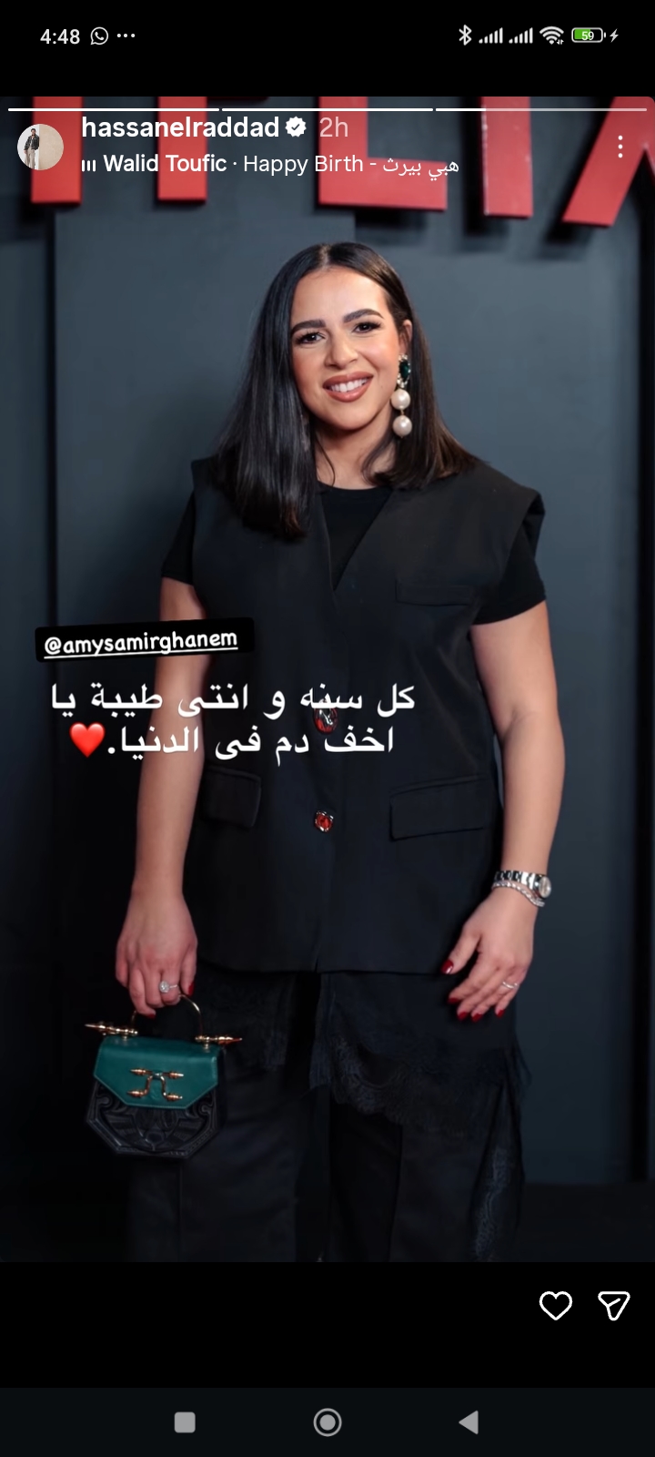 هنأ الفنان حسن الرداد زوجته الفنانة إيمي سمير غانم بمناسبة عيد ميلادها من خلال رسالة نشرها عبر أحد مواقع التواصل الاجتماعي.