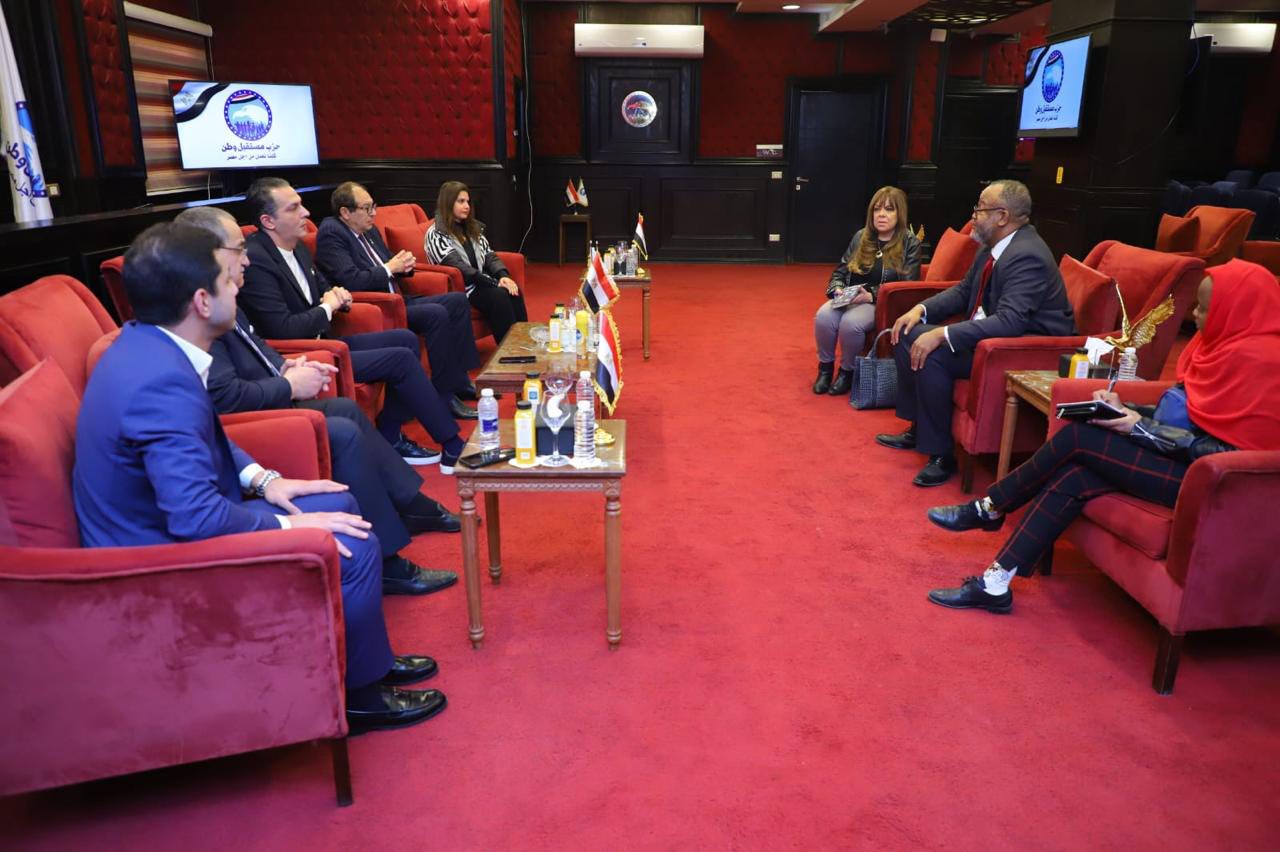و النائبة سحر البزار امين العلاقات الخارجية بحزب مستقبل وطن و النائب احمد علاء الدين امين سر لجنة العلاقات الخارجية بمجلس النواب و السفير عمرو عباس امين مساعد امانة العلاقات الخارجية بالحزب.