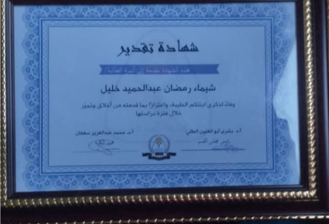 تلك الجملة التي تبدو بسيطة، حملت في طياتها وجعاً لا يُوصف؛ فقد كانت شيماء دائماً أيقونةً للنجاح والتفوق، ولم تكن العائلة تتخيل أن تأتي اللحظة التي يُرفع فيها اسمها في الكلية، بينما جسدها قد واراه الثرى.