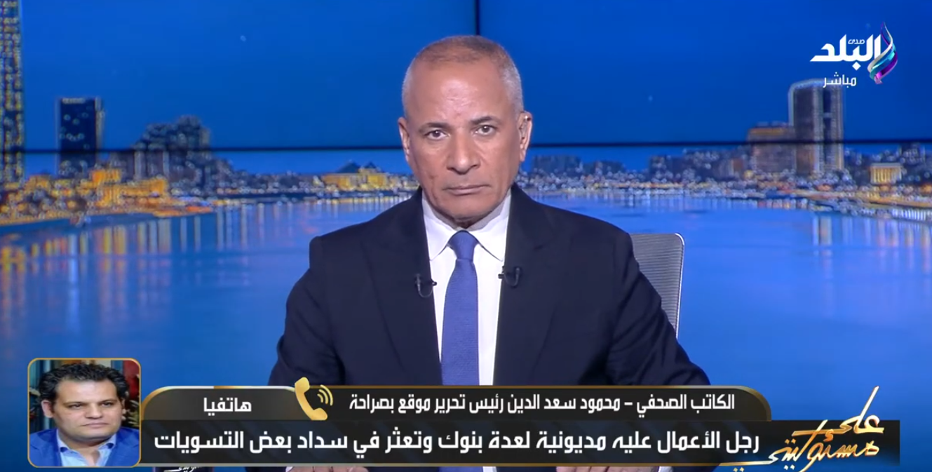 في مداخلة هاتفية مع الإعلامي أحمد موسى في برنامج «على مسئوليتي»، رد الكاتب الصحفي محمود سعد الدين، رئيس تحرير موقع بصراحة، على تعليق محامي رجل الأعمال محمد الخشن، مؤكدًا أن نشر المعلومات جاء بناءً على الوقائع الاقتصادية والمالية، وليس استهدافًا شخصيًا.