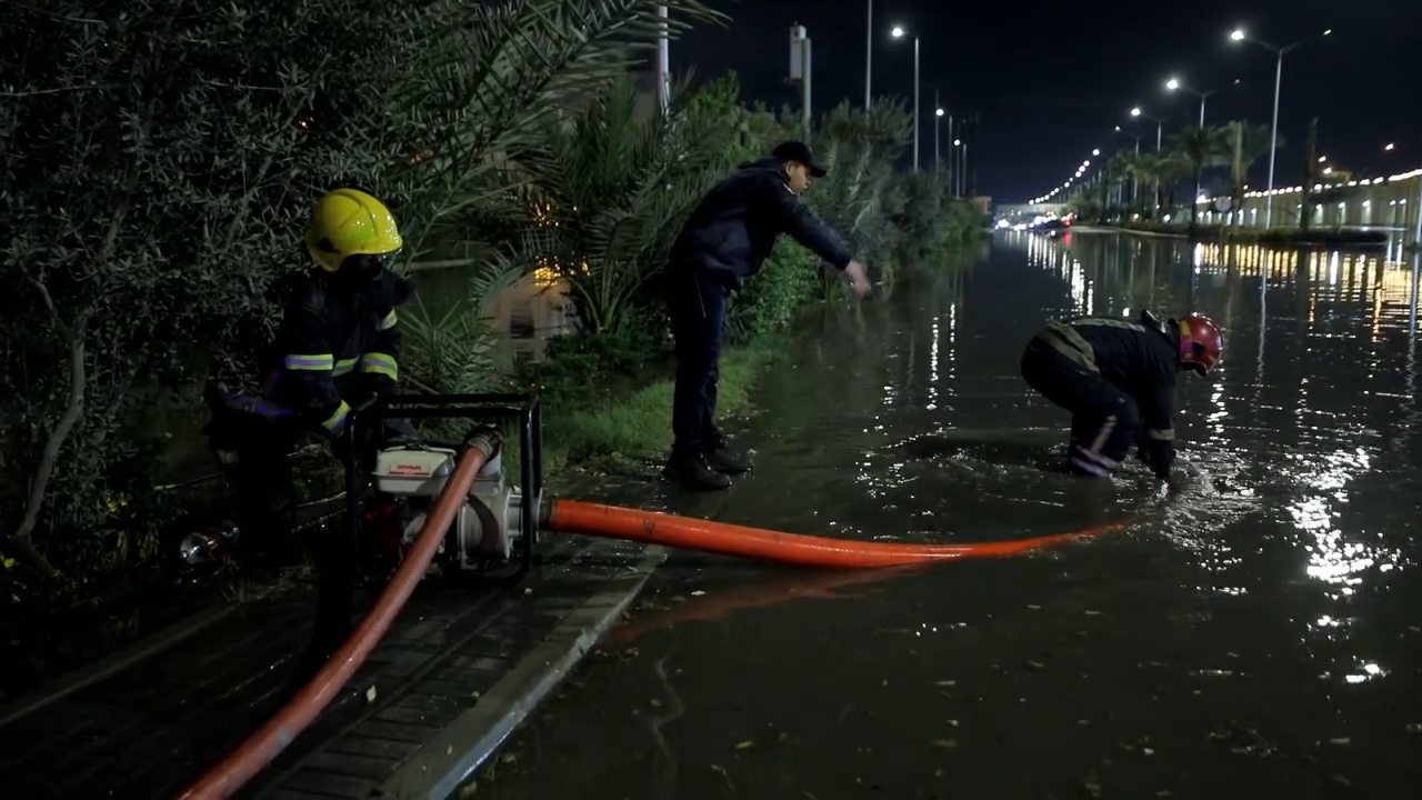 وقامت قوات الحماية المدنية بالتعامل مع تجمعات مياه الأمطار، حيث تم الدفع بسيارات ومعدات الشفط والمضخات المتطورة لرفع المياه من الأنفاق والميادين الحيوية التي شهدت كثافات مائية بالإضافة لمطالع ومنازل الكباري والأنفاق لضمان سيولة حركة المرور ومنع تعطل مصالح المواطنين.