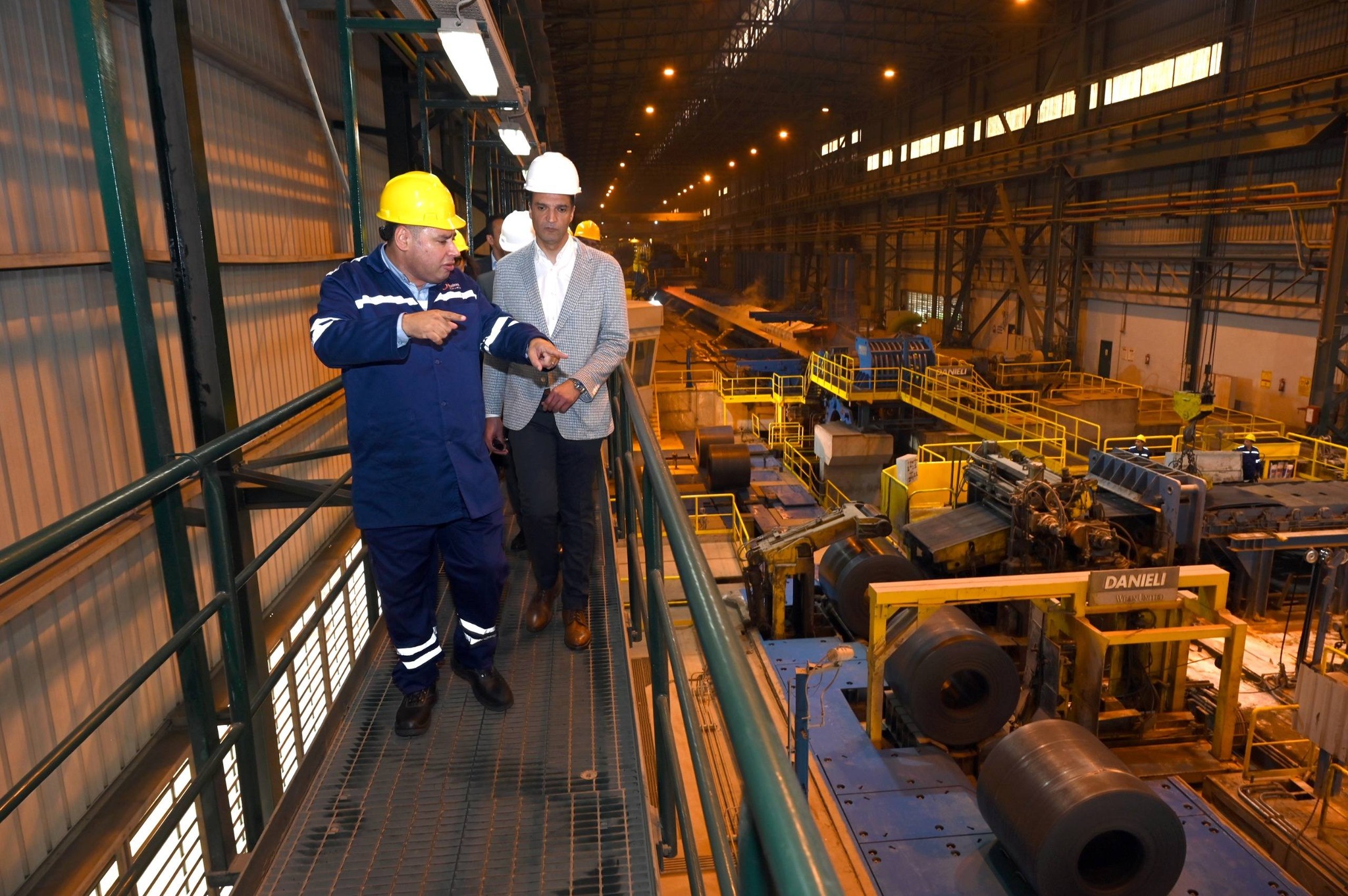 وقد كان في استقبال الوزير السيدة عفاف أحمد عز رئيس قطاع تطوير الاعمال بالمجموعة و علاء أبو الخير نائب رئيس مجموعة عز الصناعية، وخلال الزيارة تفقد الوزير مصنع الاختزال، ومنطقة الأفران والماكينات، ومراحل درفلة الصلب المسطح وصولاً للمنتج النهائي.