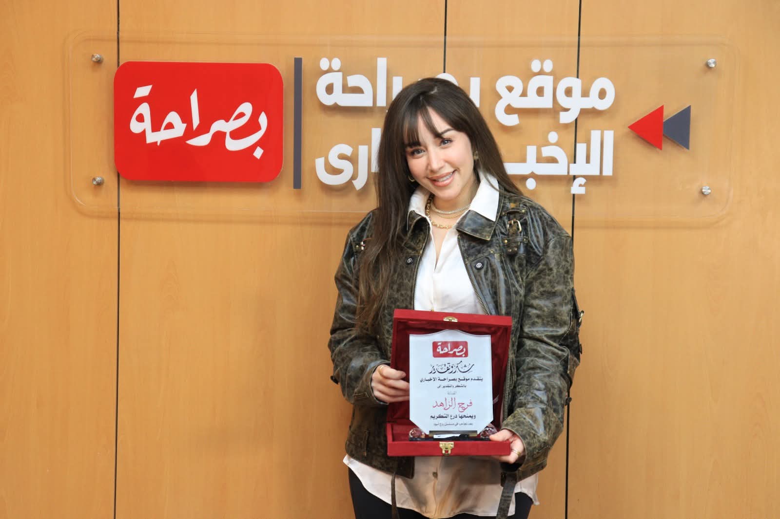 كرم موقع «بصراحة الإخباري» برئاسة الكاتب الصحفي محمود سعد الدين الفنانة فرح الزاهد، وذلك بعد النجاح الساحق الذي حققته في مسلسل “روج أسود” بطولة لقاء الخميسي، والذي سبق عرضه مؤخرا ضمن مسلسلات الموسم الرمضاني الماضي 2026.
