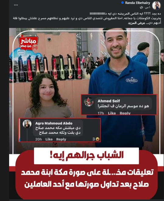 هاجمت الفنانة راندا البحيري منتقدي صورة مكة ابنة اللاعب الدولي المصري محمد صلاح، التي تلقت بعض التعليقات المسيئة لها بعد صورة لها مع أحد العاملين في المطاعم بإنجلترا.