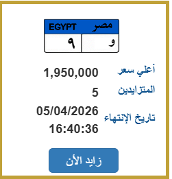 سجل المزاد حتىمليون و950 ألف جنيه على اللوحة التي تحمل رقم "و 9" وتزايد على اللوحة 5 أشخاص حتى الآن، ومن المقرر انتهاء المزايدة على اللوحة في 5 أبريل.