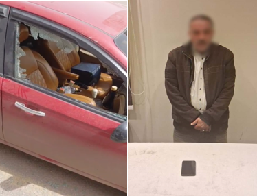 وبمواجهته، اعترف بارتكاب الجريمة باستخدام قطعة حجر لكسر زجاج السيارة، وتم بإرشاده ضبط الهاتف المحمول المسروق.