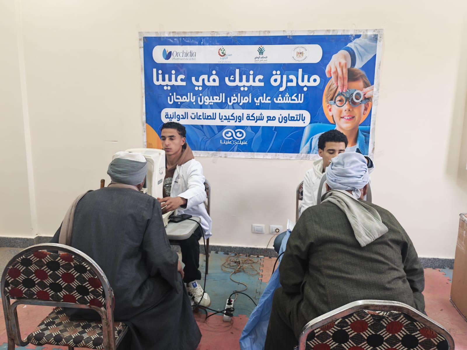 وضمن أنشطة المبادرة أيضاً وفي إطار مبادرة «عنيك في عنينا» للكشف على أمراض العيون بالمجان وبالتعاون مع شركة أوركيديا للصناعات الدوائية، تم إجراء العديد من الكشوفات الطبية على عددٍ من المواطنين، وتسليم نظارات طبية مجاناً على الحالات المستحقة.