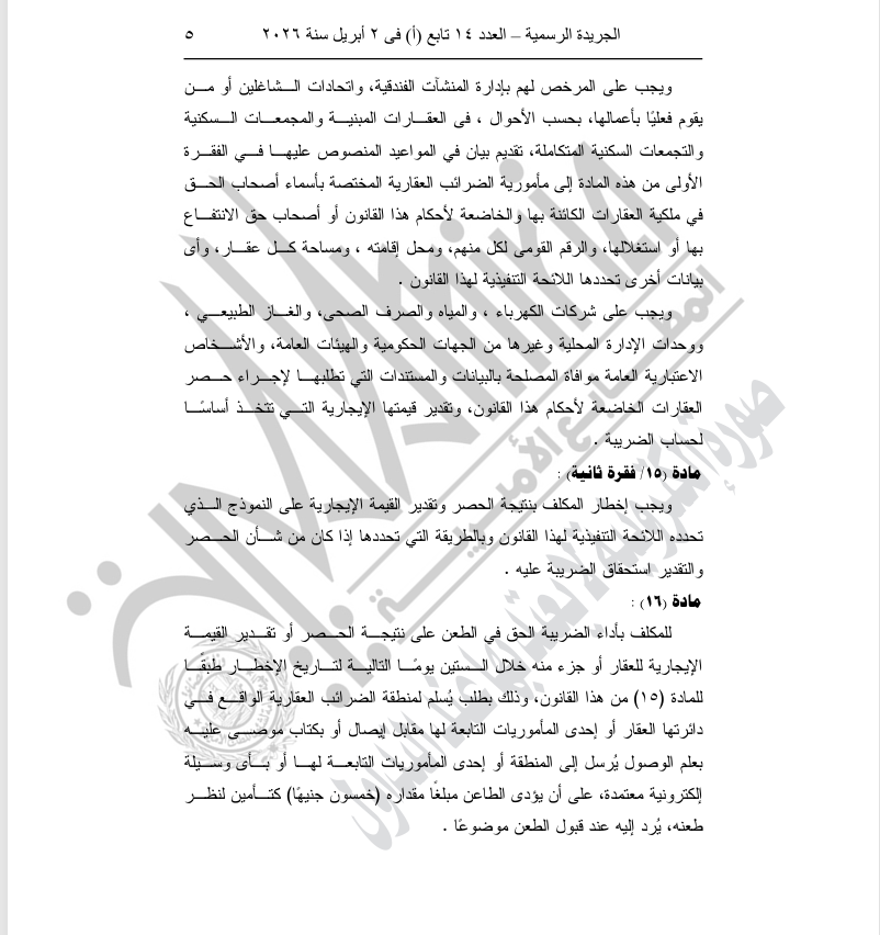 نصت المادة الأولى على استبدال عبارتي منطقة الضرائب العقارية