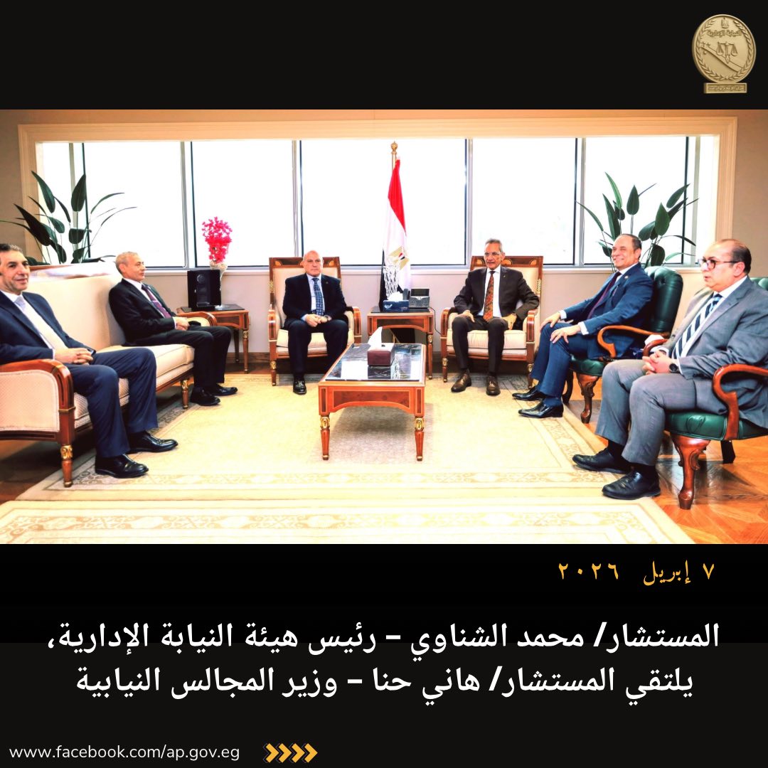 استقبل المستشار محمد الشناوي، رئيس هيئة النيابة الإدارية، المستشار هاني حنا، وزير شئون المجالس النيابية، وذلك خلال زيارة رسمية لتقديم التهنئة بمناسبة توليه مهام منصبه الجديد.