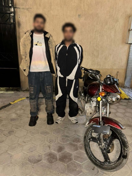 أمكن تحديد وضبط مرتكبا الواقعة عاطلان “لأحدهما معلومات جنائية” مقيمان بدائرة قسم شرطة ثان السلام بالقاهرة، وبحوزتهما الدراجة النارية المستخدمة فى إرتكاب الواقعة "بدون لوحات معدنية"، وبمواجهتهما إعترفا بإرتكابهما الواقعة على النحو المشار إليه.