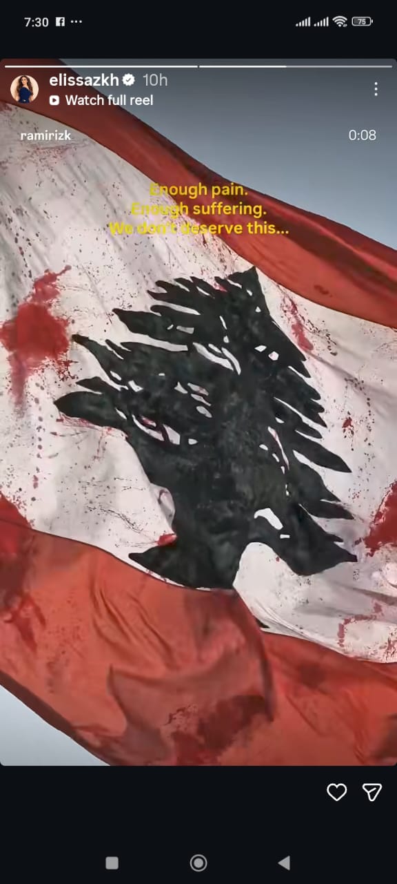 ونشرت هيفاء وهبي صورة للعلم اللبناني، وذلك عبر حسابها الرسمي بموقع التواصل الاجتماعي “انستجرام”، وعلقت عليها قائلة: كفاية آلم، كفاية معاناة فهم لا يستحقون ذلك.