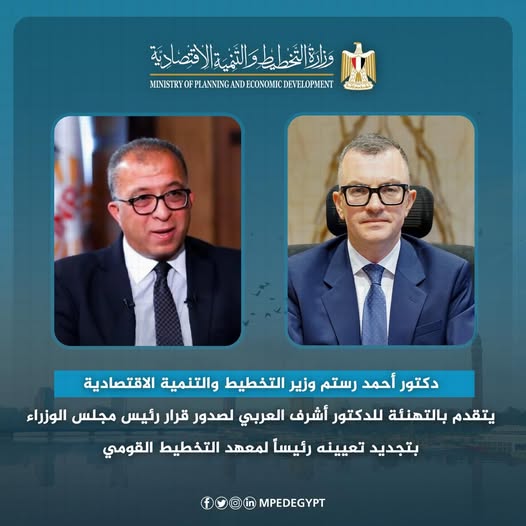 أصدر الدكتور مصطفى مدبولي، رئيس مجلس الوزراء، القرار رقم 997 لسنة 2026، بتجديد تعيين الدكتور أشرف العربي رئيسًا لمعهد التخطيط القومي، وذلك اعتبارًا من 17 فبراير 2026 ولمدة أربع سنوات، في إطار حرص الدولة على الاستفادة من الخبرات الوطنية لدعم منظومة التخطيط وتعزيز كفاءة السياسات العامة، بما يسهم في تحقيق أهداف التنمية المستدامة.