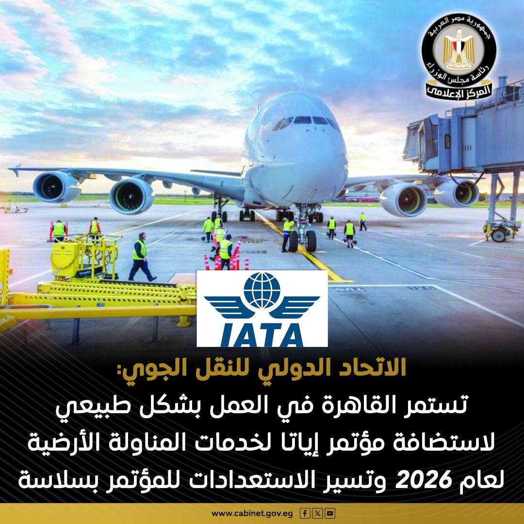 أكد الاتحاد الدولي للنقل الجوي (إياتا) أن القاهرة تواصل العمل بشكل طبيعي لاستضافة مؤتمر إياتا لخدمات المناولة الأرضية خلال الفترة من 19 إلى 21 مايو 2026، مشيرًا إلى أن جميع الشركاء المحليين على أتم الاستعداد لاستقبال الفعالية، وأن عملية التخطيط تسير بسلاسة.
