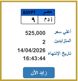 سجل المزاد حتى الآن 525 ألف جنيه على اللوحة التي تحمل رقم "أ د م 9" وتزايد على اللوحة شخصين حتى الآن، ومن المقرر انتهاء المزايدة على اللوحة في 14 أبريل.