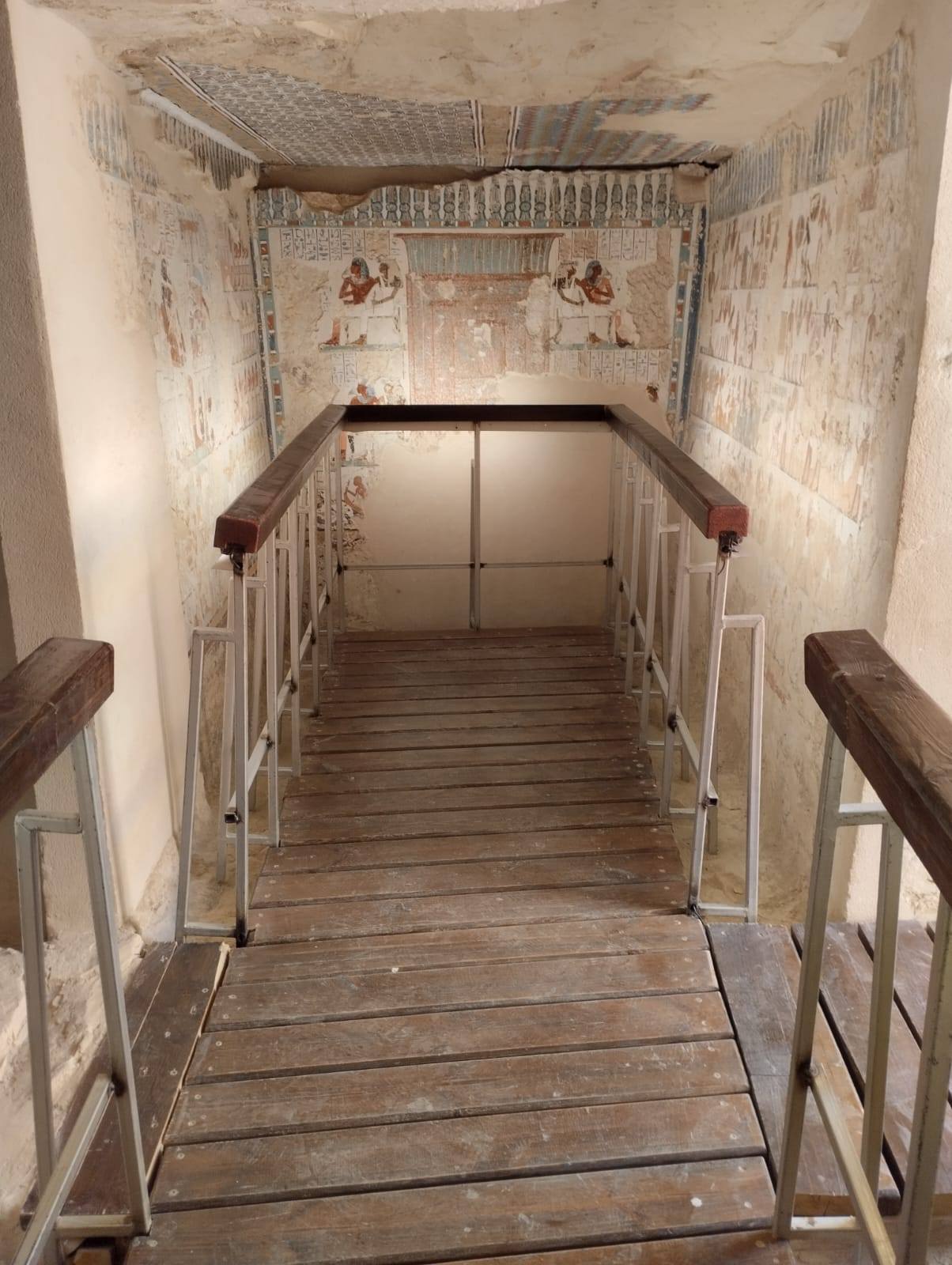 كما نفذ فريق الترميم أعمال تنظيف شاملة للمقبرة، شملت إزالة الأتربة، والتنظيف الميكانيكي، ومعالجة الشقوق الدقيقة.