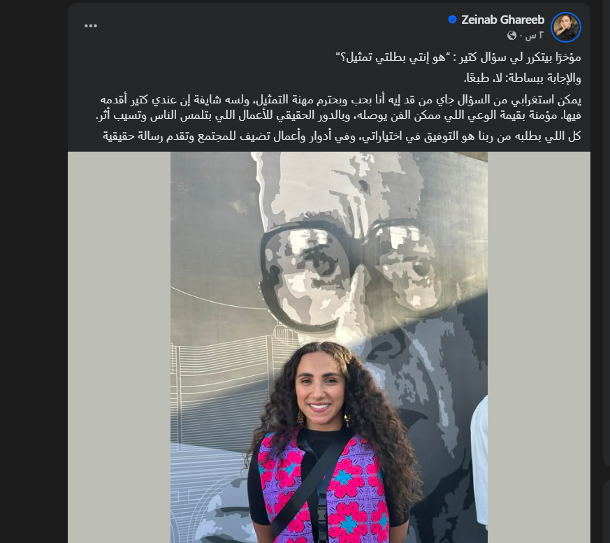 نفت الفنانة زينب غريب ما تردد من شائعات بشأن اعتزالها التمثيل، مؤكدة استمرارها في مسيرتها التمثيلية وشغفها بتقديم أعمال تحمل رسائل مجتمعية هادفة.