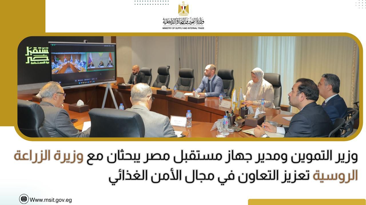 عقد الدكتور شريف فاروق، وزير التموين والتجارة الداخلية، والدكتور بهاء الغنام، المدير التنفيذي لجهاز مستقبل مصر للتنمية المستدامة، اجتماعًا عبر الفيديو كونفرانس مع وزيرة الزراعة الروسية، أوكسانا لوت، لبحث تعزيز التعاون المشترك، خاصة في مجالات استيراد القمح والحبوب والزيوت بما يدعم منظومة الأمن الغذائي، إلى جانب التأكيد على أهمية توسيع التعاون في مجالات اللوجستيات والأسمدة والبذور والمبيدات، بالإضافة إلى تعزيز التبادل التجاري والاستثماري، بما يضمن استقرار الأسواق وتوافر السلع الاستراتيجية في ظل المتغيرات العالمية.