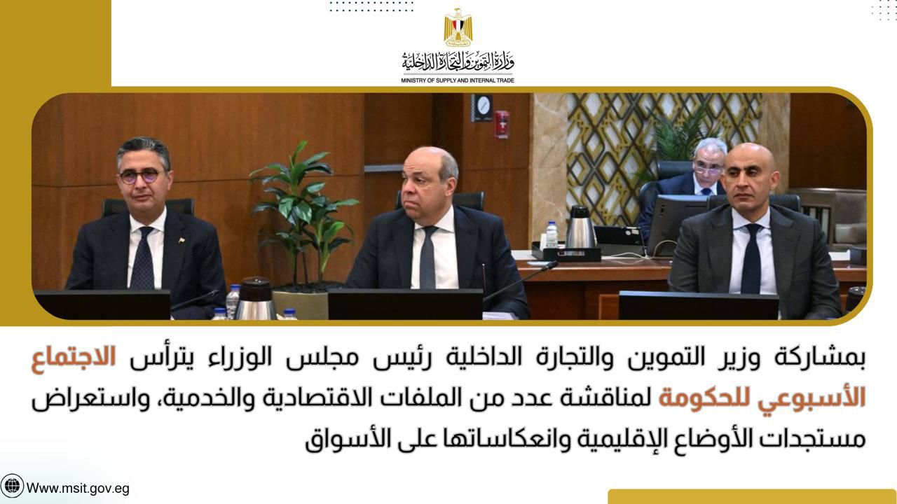 بحضور وزير التموين والتجارة الداخلية، ترأس الدكتور مصطفى مدبولي رئيس مجلس الوزراء، الاجتماع الأسبوعي للحكومة بمقرها في العاصمة الجديدة، وذلك لمناقشة عدد من الموضوعات والملفات.