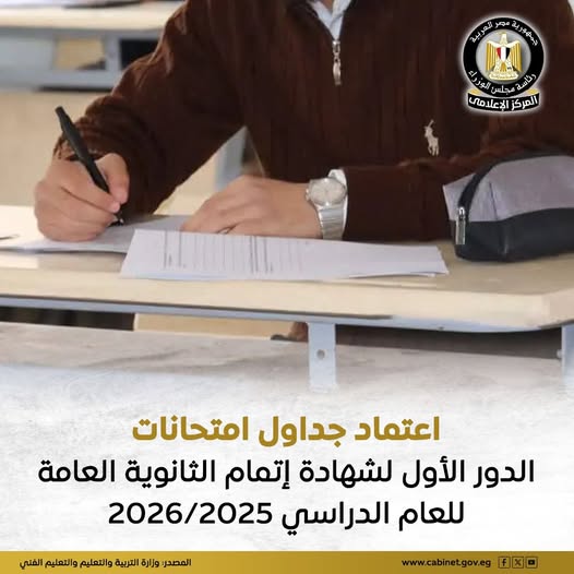 اعتماد جداول امتحانات الدور الأول لشهادة إتمام الثانوية العامة للعام الدراسي 2026/2025