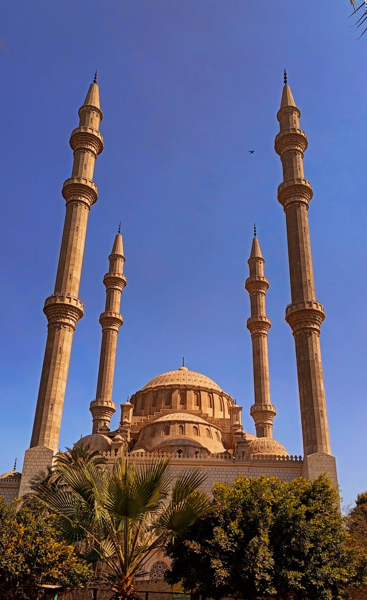 وأبرز ما يميزه من الخارج وجود أربع مآذن، حيث يبلغ ارتفاع كل منها 110 أمتار، مما يجعله ضمن أطول مآذن مصر، بالإضافة إلى وجود 18 قبة و36 حمامًا، كما يحتوي المسجد على مركز إسلامي، ومعهد ديني، ومستشفى مجهز باحدث الأجهزة الطبية، ودار أيتام، ودار مسنين، ودار مناسبات، ليكون أكثر من مجرد مسجد، بل صرحًا دينيًا وإنسانيًا متكاملًا.