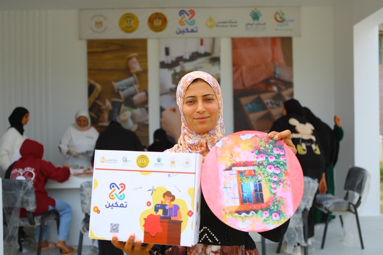 كما استهدفت المؤسسة من خلال هذه المراكز تدريب وتعليم السيدات على حرف السجاد اليدوي والكليم والملايات والفخار ومشغولات الحفر على الخشب ومشغولات من إعادة تدوير الورق والزجاج تحقيقاً لمعيار أساسي من معايير الاستدامة وهو التمكين الاقتصادي للمرأة القروية المعيلة.