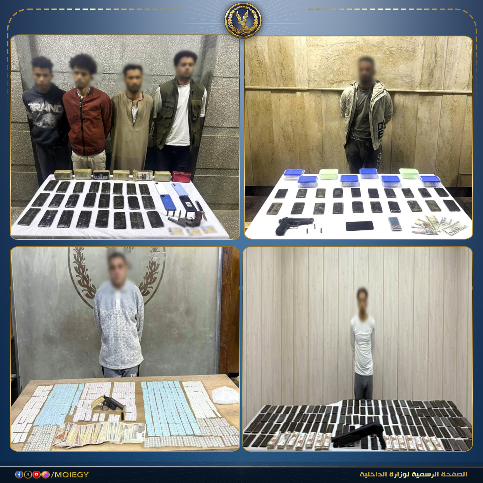 في إطار استمرار جهود وزارة الداخلية لتوجيه ضربات استباقية للبؤر الإجرامية وضبط جالبي ومتجري المواد المخدرة وحائزي الأسلحة النارية غير المرخصة، أكدت تحريات قطاعي الأمن العام ومكافحة المخدرات والأسلحة والذخائر غير المرخصة، بالتنسيق مع مديرية أمن القاهرة، قيام بؤر إجرامية بعدة محافظات تضم عناصر جنائية شديدة الخطورة بجلب وترويج كميات كبيرة من المواد المخدرة، إلى جانب حيازة أسلحة نارية غير مرخصة.