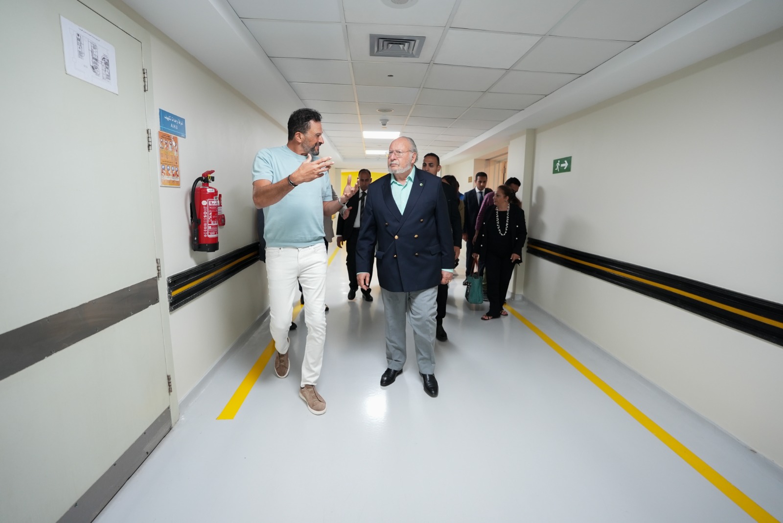 النائبة السابقة داليا يوسف ترافق الملك أحمد فؤاد الثاني في زيارته لمستشفى الناس