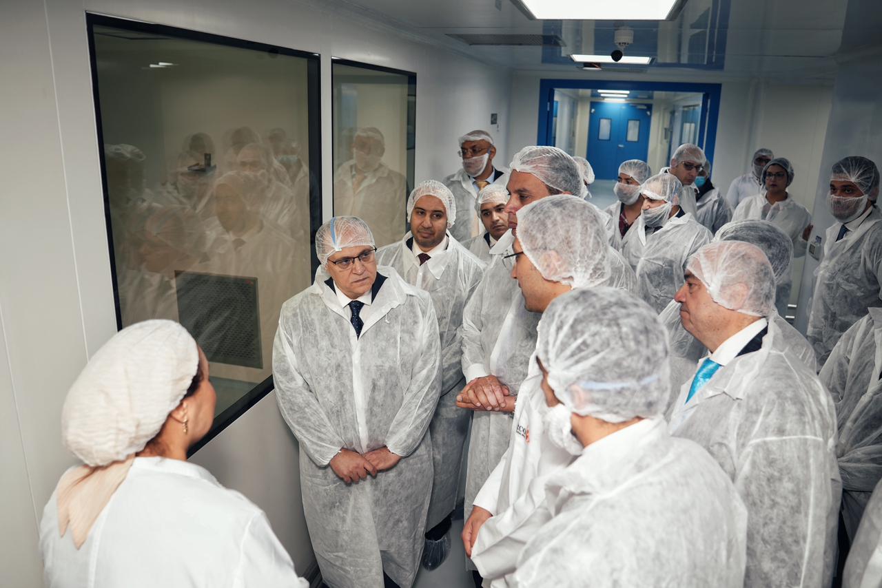 وتفقد رئيس الهيئة خلال جولته خطوط الإنتاج داخل المصنع، واطلع على أحدث التقنيات المستخدمة في عمليات التصنيع، والتي تعمل وفق معايير الجودة العالمية (GMP)، بما يضمن كفاءة الإنتاج ومأمونية المستحضرات الدوائية.