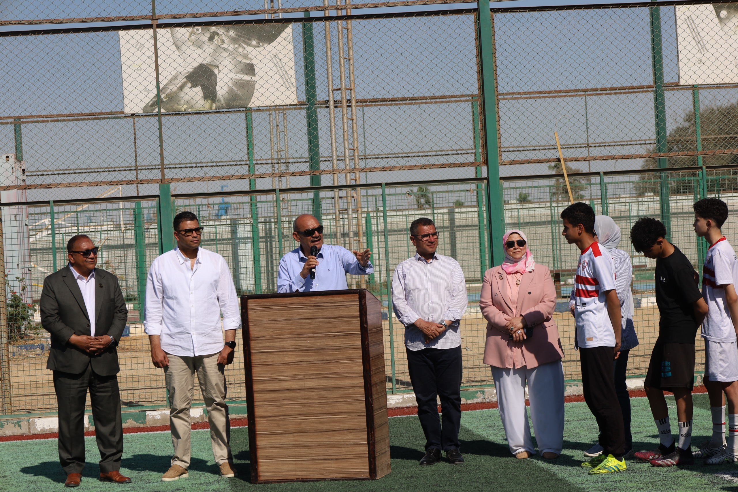 وقيادات مديرية التربية والتعليم ، والساده رؤساء الاحياء في مشهد يعكس التكامل والتعاون بين مختلف الجهات لدعم الأنشطة الرياضية والشبابية .