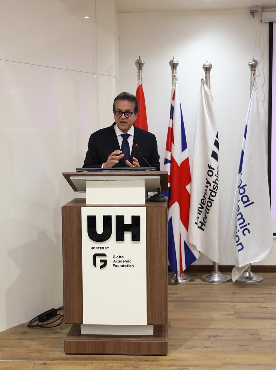 وأشاد الدكتور خالد عبدالغفار بجامعة هيرتفوردشاير وشركائها لتفانيهم في تهيئة بيئة حاضنة للمواهب ومحفزة للابتكار، موضحاً أن الاستثمار في التعليم والبحث والتنمية البشرية هو السبيل لبناء أنظمة صحية مرنة تحسن جودة الحياة وتسهم في التنمية المستدامة.