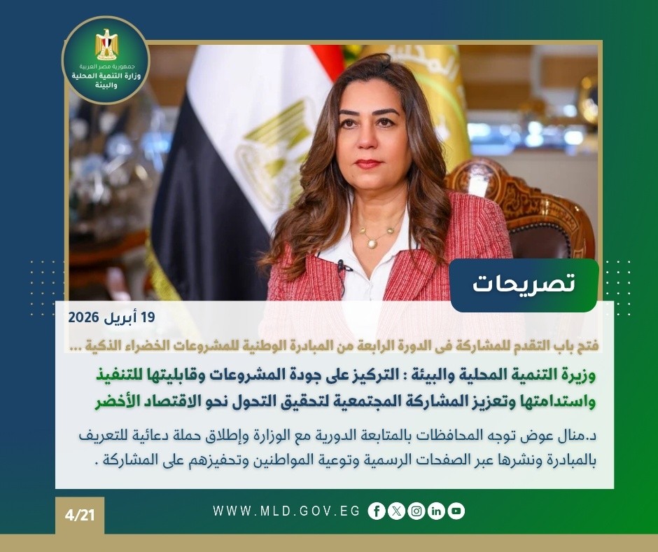 نشرة الحصاد الأسبوعي لأنشطة وزارة التنمية المحلية والبيئة (17 : 23 أبريل 2026)