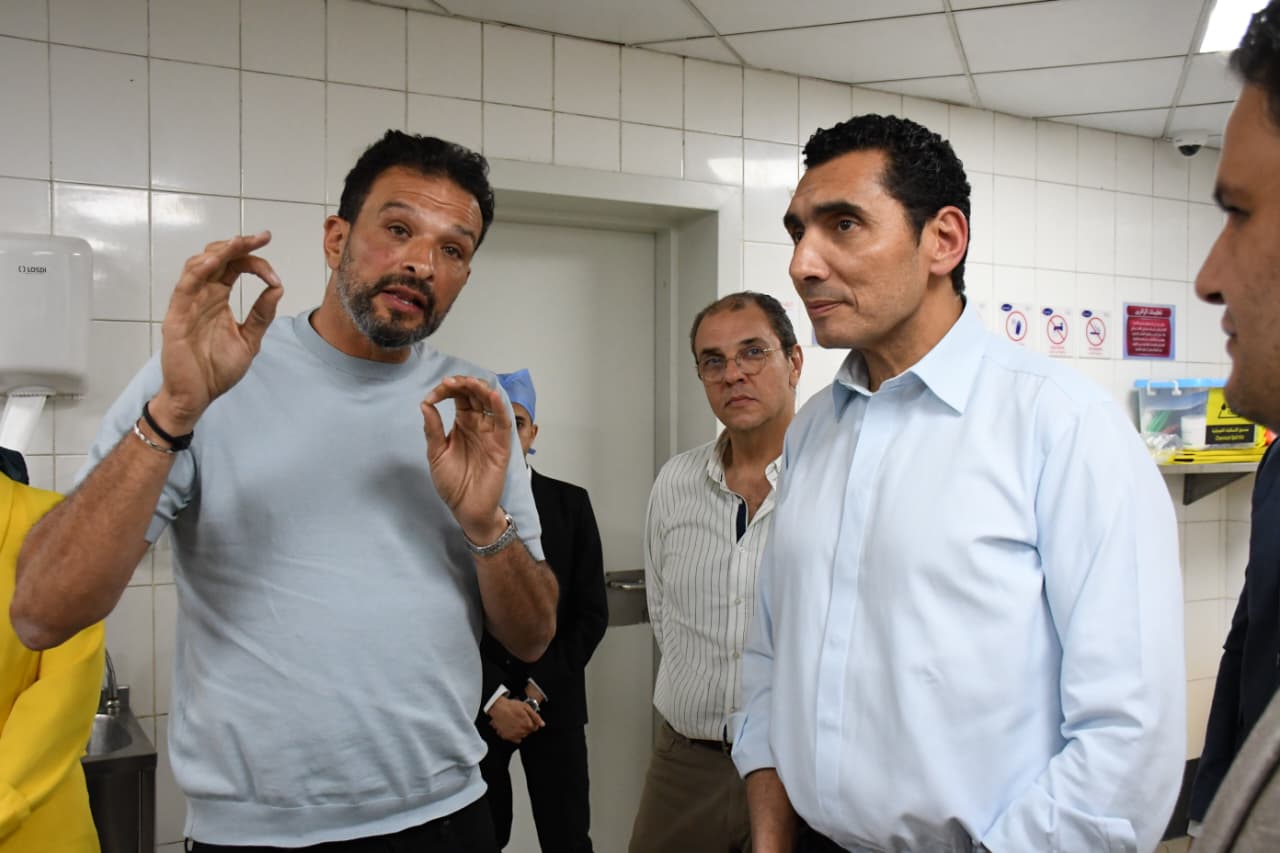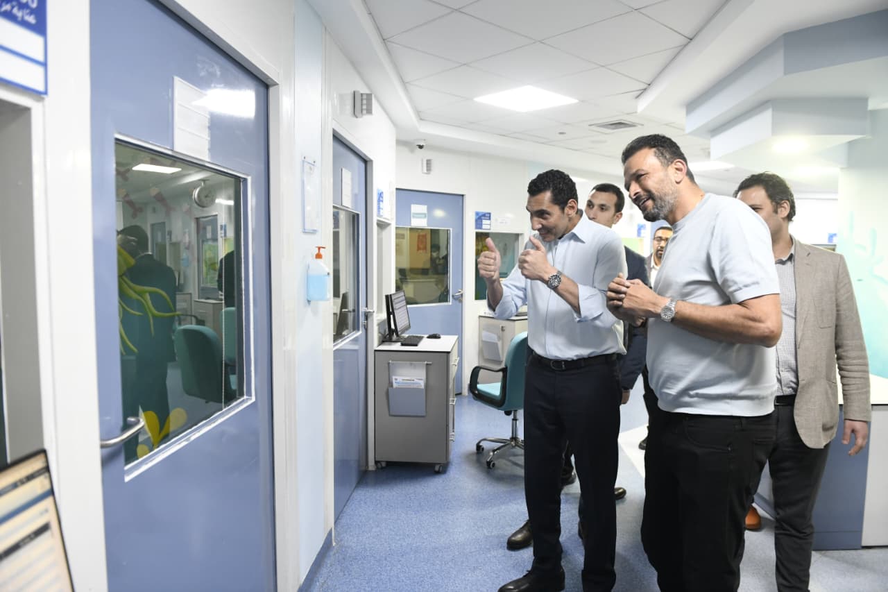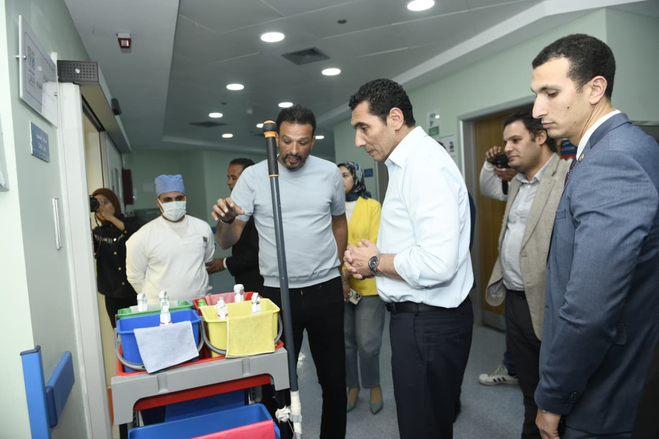 المهندس أيمن عباس، أمين صندوق مؤسسة الجود الخيرية، ورئيس مجلس إدارة مستشفى الناس، وحاتم الملا المدير التنفيذي للمستشفى، كانا في استقبال وزير الشباب والرياضة، خلال الزيارة الهامة، فيما رافقه عباس في جولة تفقديه لتقديم تعريف وشرح مفصل له عن كل تفاصيل العمل داخل أقسام المستشفى.