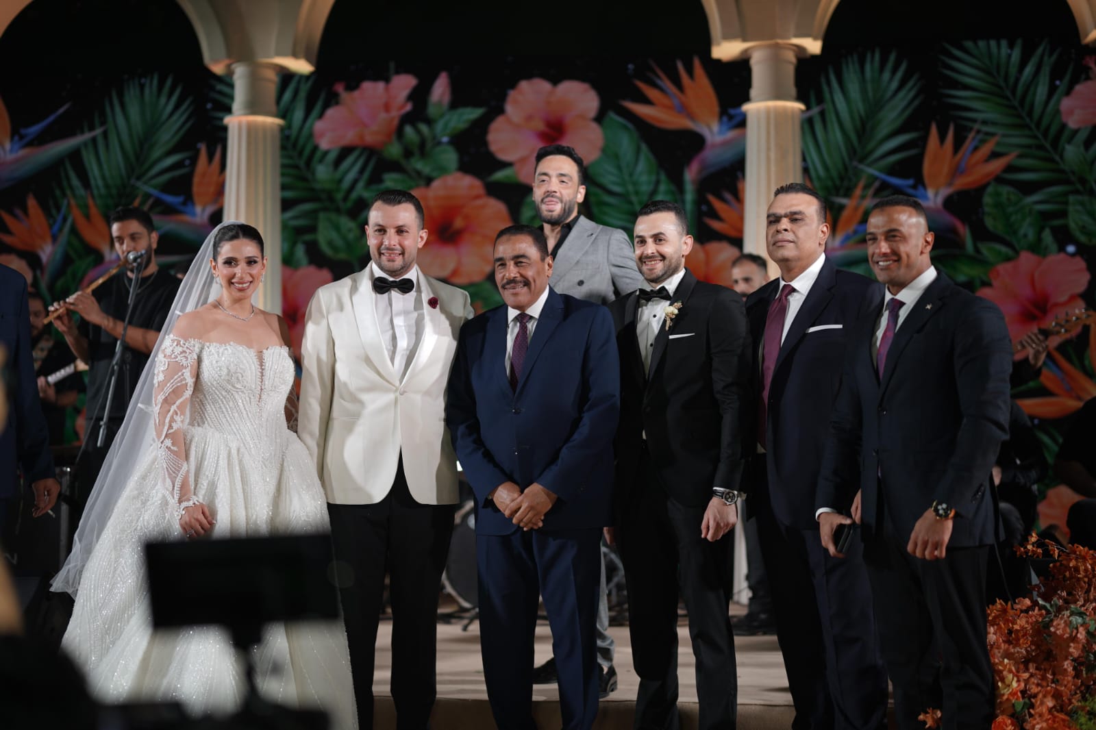 كما شهد الزفاف حضوراً لافتاً لعدد من الفنانين الذين شاركوا العروسين فرحتهما، وفي مقدمتهم الفنان رامي جمال، والفنان مصطفى حجاج، ونجم الأغنية الشعبية محمود الليثي.